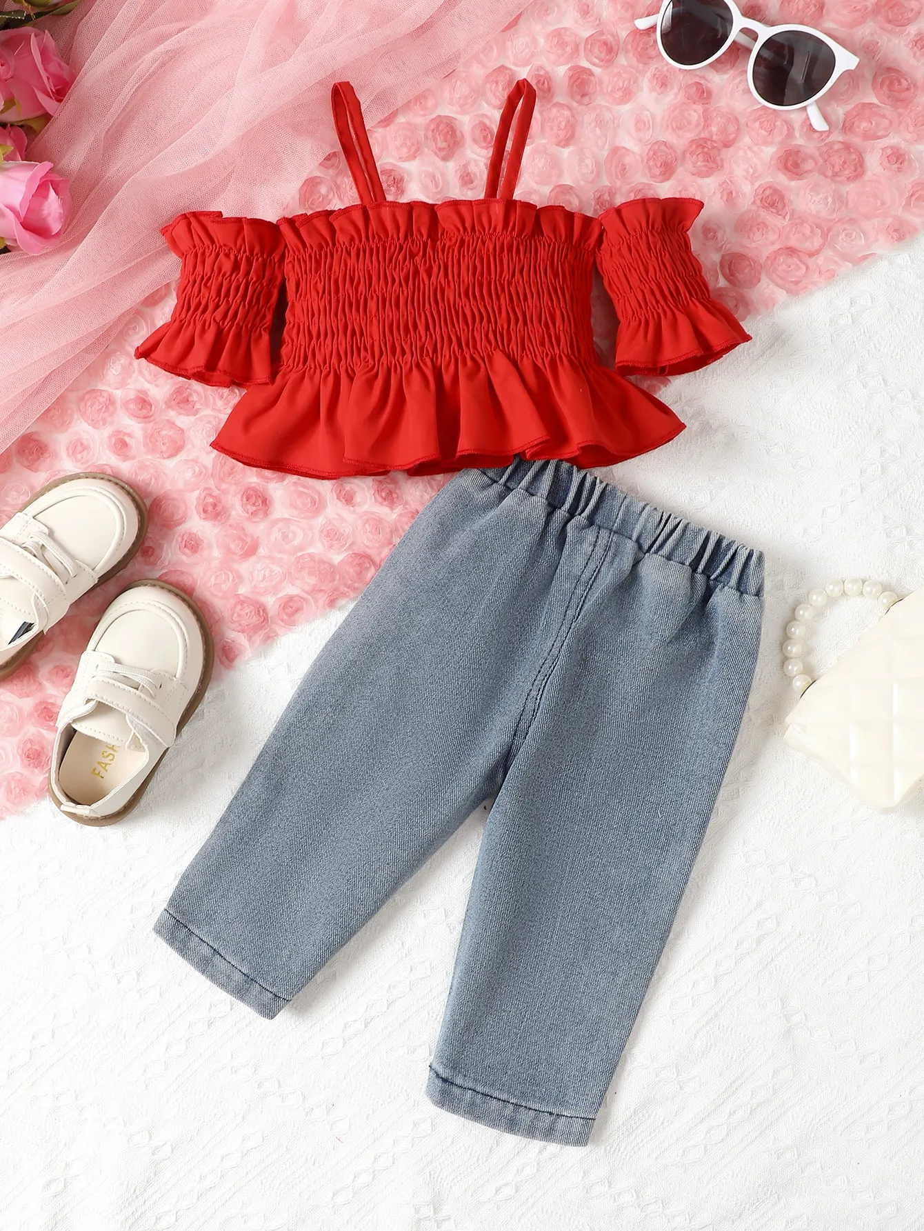 even during extended wear. The vest top is lightweight, and the jeans offer a flexible fit, making it easy for your child to move, bend, and