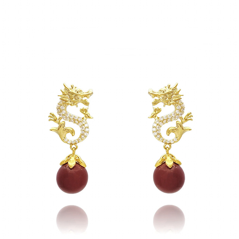 These earrings are made with attention to detail and quality materials, ensuring durability and long-lasting beauty. The zodiac dragon design is intricately detailed, and the red beads are securely set in place, making these earrings an investment in both cultural significance and style.