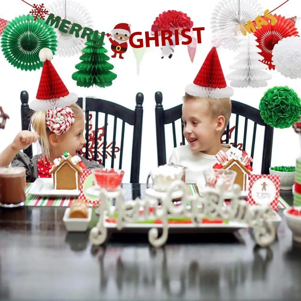 Christmas Honeycomb Ball Suit Christmas Hat Pendant Christmas Letter Hanging Flag Spiral Latte Art