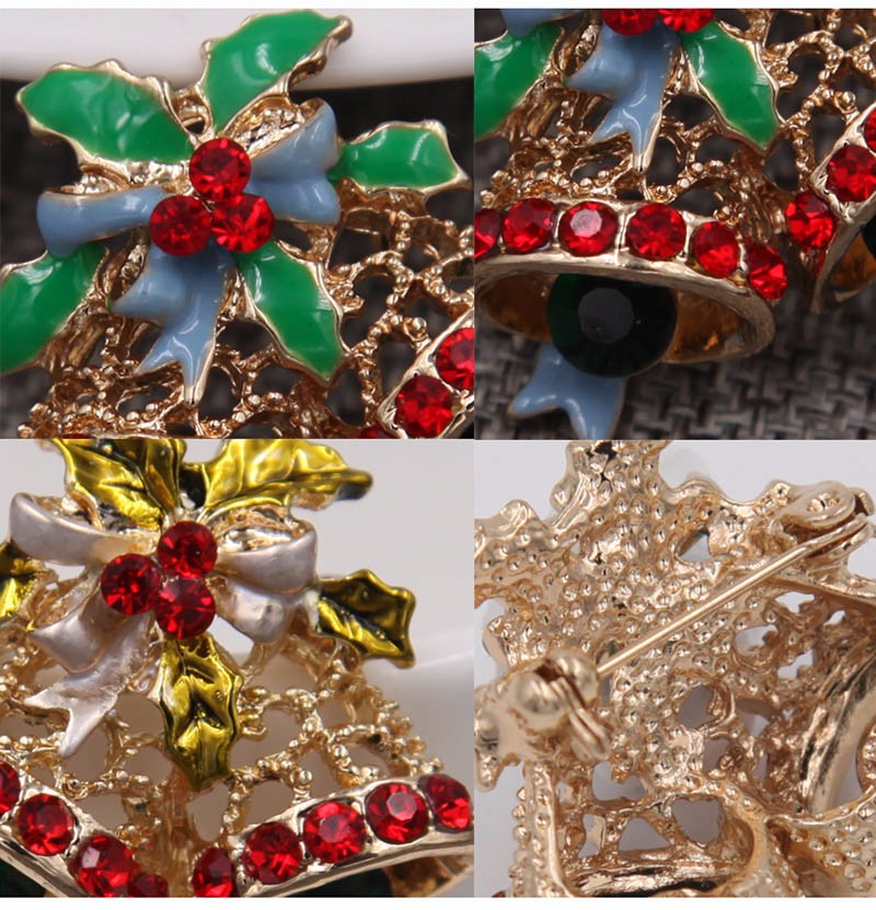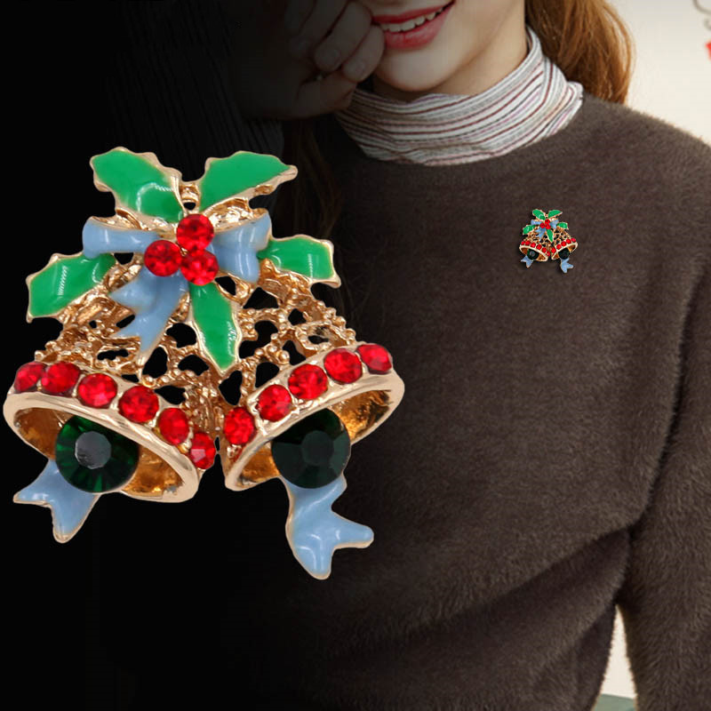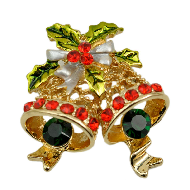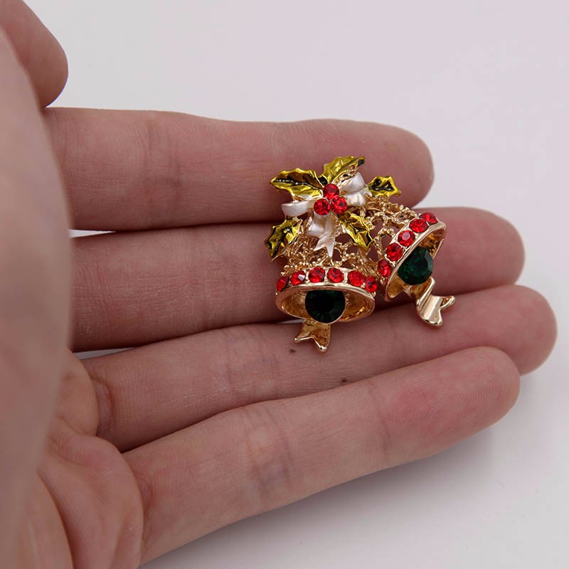Christmas Jingle Bell Pin Enamel Bow Hollow Metal Pin