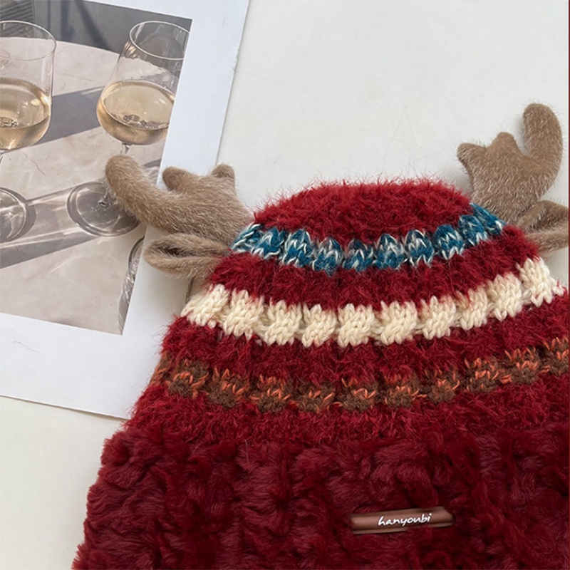 Christmas Knitted Hat With Cute Deer Antler Winter Warm Thick Hat For Girls Women