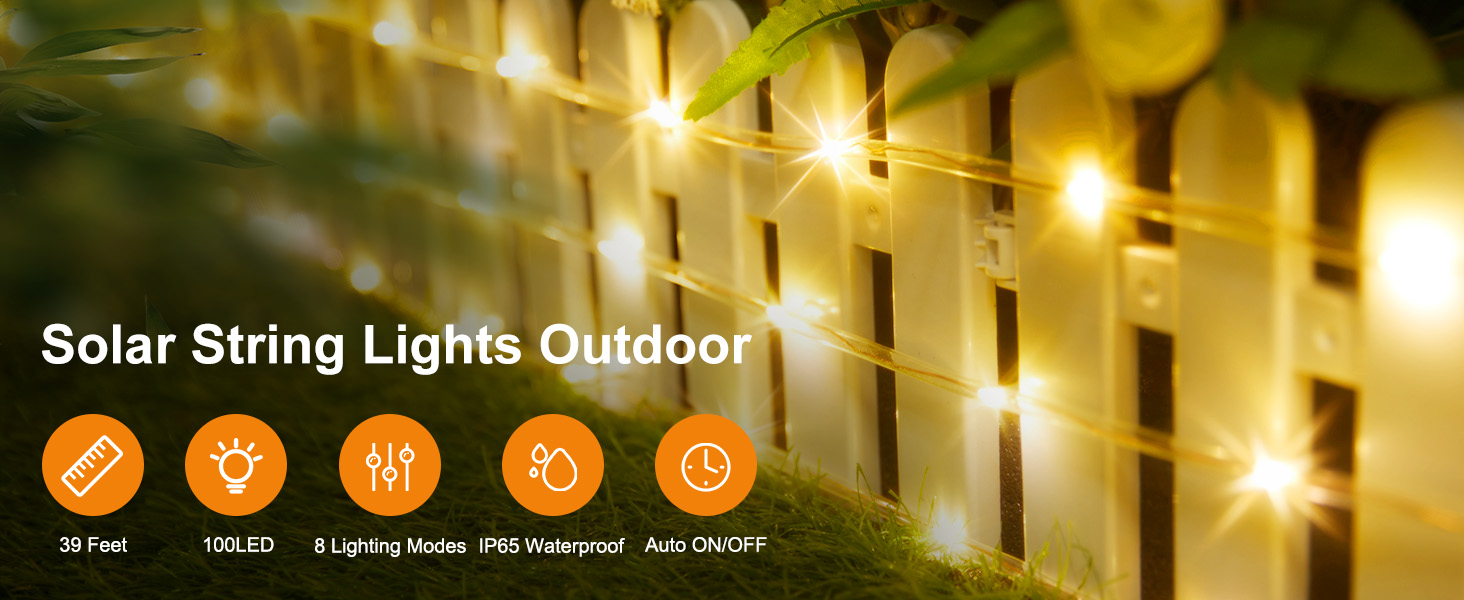Solar powered string lights outdoor waterproof are designed with intelligent sensors, this outdoor waterproof solar light will recharge with sunlight in the daytime and auto light up at night. Built-in 800mAh rechargeable NI-MH battery also enables it to work for 8-10 hours a day.