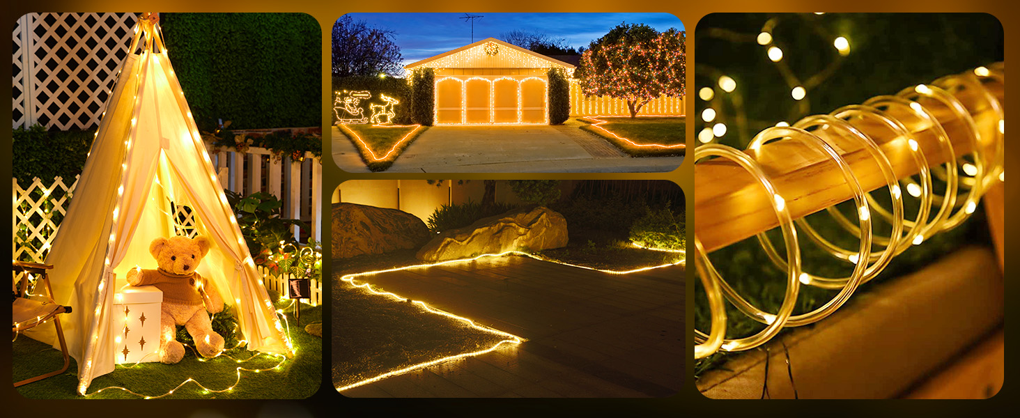- 【Versatile & DIY Friendly】These solar string lights are perfect for a wide range of applications. Whether you're decorating your garden, patio, fence, or trees, led fairy lights will add a warm and inviting atmosphere. Additionally, the flexible design allows you to easily shape the lights into desired patterns, such as heart shapes for romantic occasions or holiday-themed designs for Christmas.