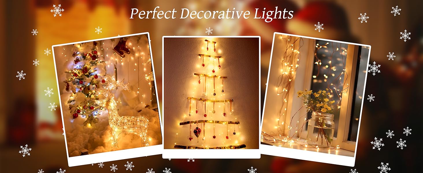 Elaborately designed strings of warm white Christmas lights use high-quality LED beads to create an enchanting light show that creates a festive atmosphere.
