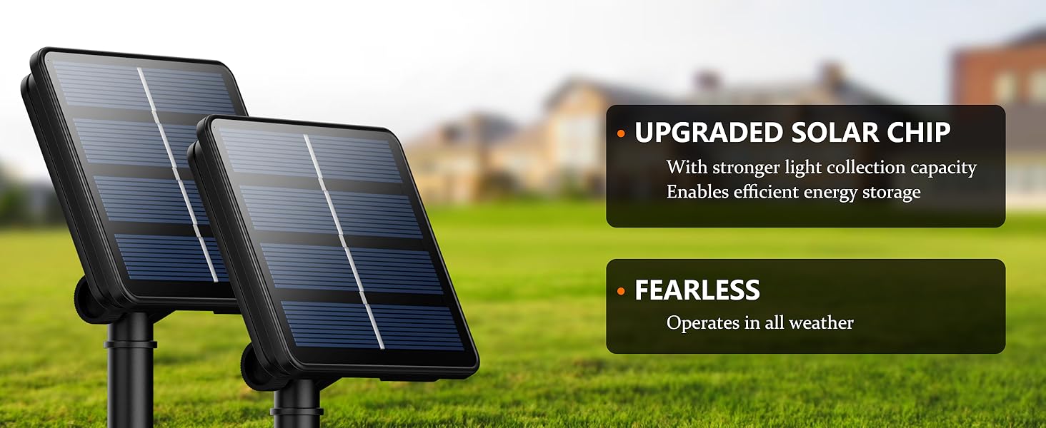 - [2023 NEW UPGRADED LIGHT SENSOR] -- Starlight solar string lights use the latest bulb technology, which enlarges the light beads and also reduces power consumption. It also uses more advanced monocrystalline silicon solar panels that can receive and store the sun's energy and then release it efficiently. Whether it rains, sunsets or snows, all modules are IP65 waterproof, making them suitable for indoor and outdoor use without fear damage (canno be submersion in water).