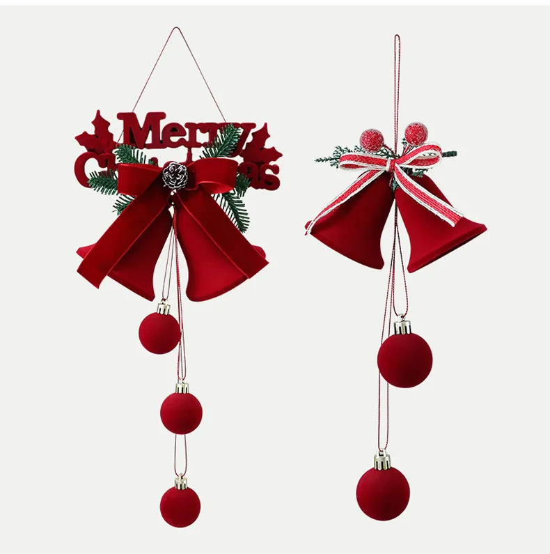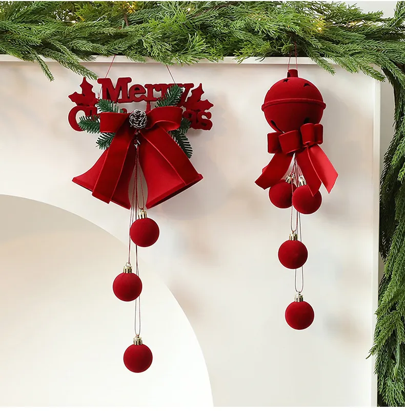 Specifications: flocking letter Brand double bell, flocking Bell bow, flocking ring pendant, flocking bow double bell, flocking Christmas