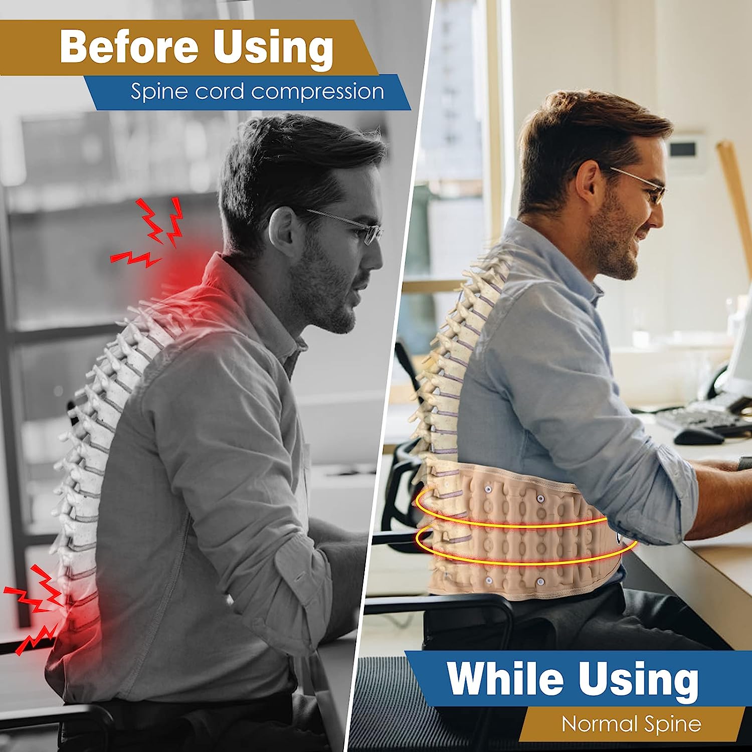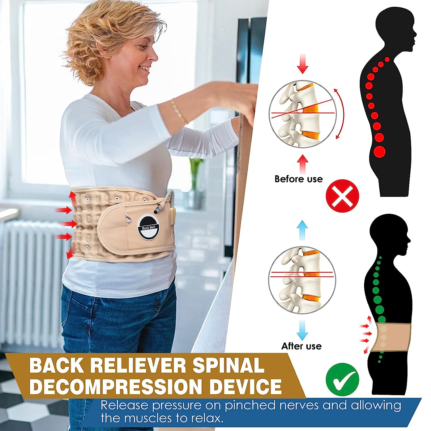 Elimine su dolor de espalda hoy mismo: Diga adiós a las limitaciones y siga disfrutando de su vida diaria con el Cinturón de Descompresión Lumbar.