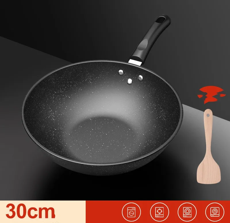 Color: [basic style] 28cm medical Stone wok, [natural maifan stone] 30cm deepening thickening non-stick pan without lid (get wooden