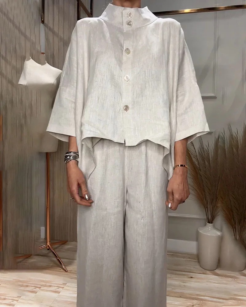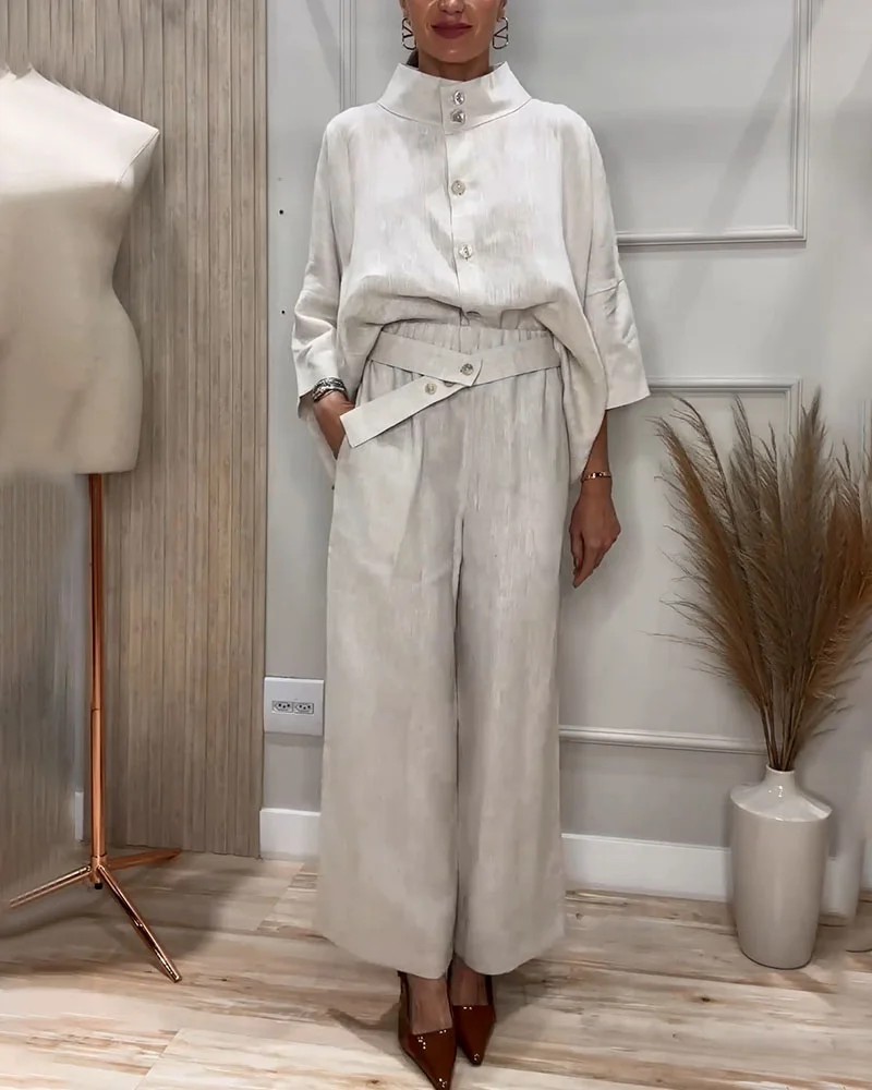 City Elegant Comfortable Stand-up Collar 34 Sleeve Shirt Outfit