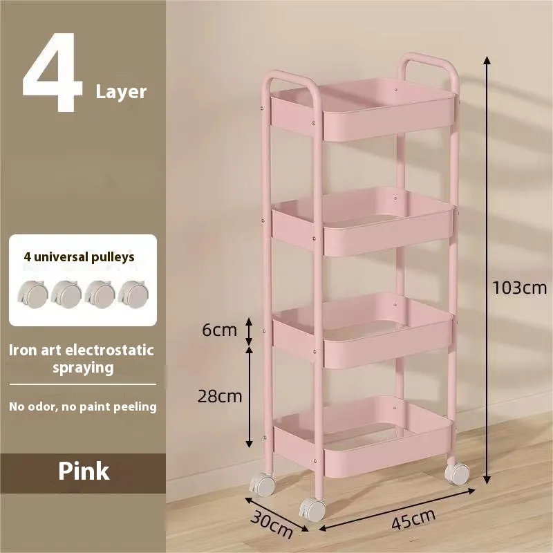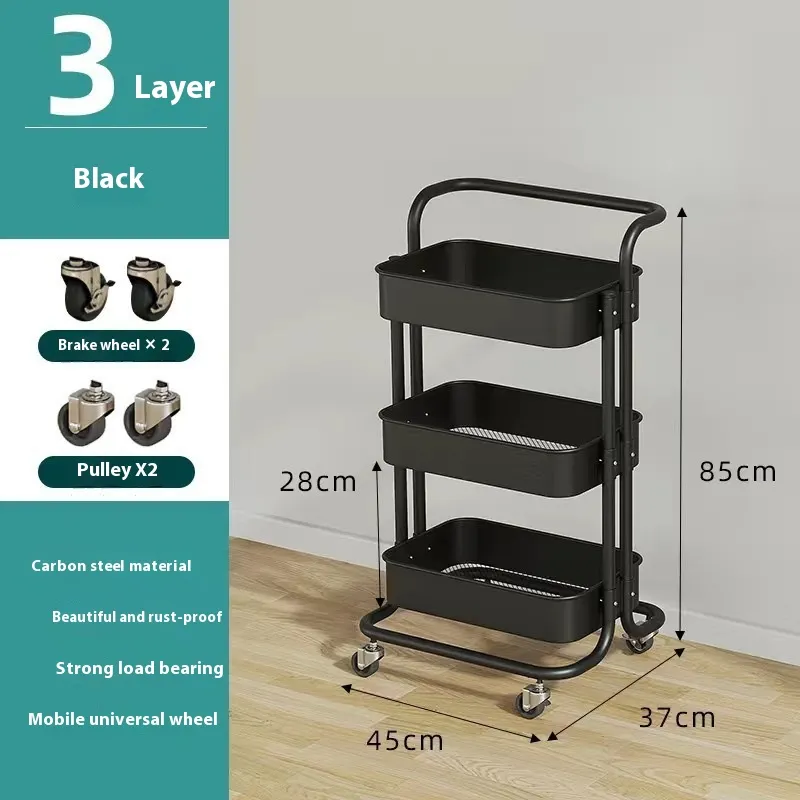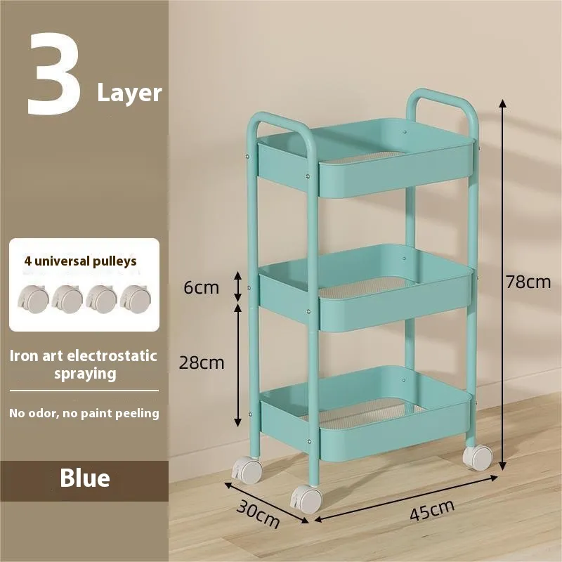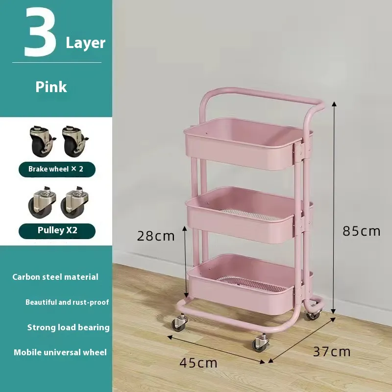 green basket White Rod trolley, 3-layer carbon steel red basket beige Rod trolley, 3-layer lake blue carbon steel trolley, 3-layer pink