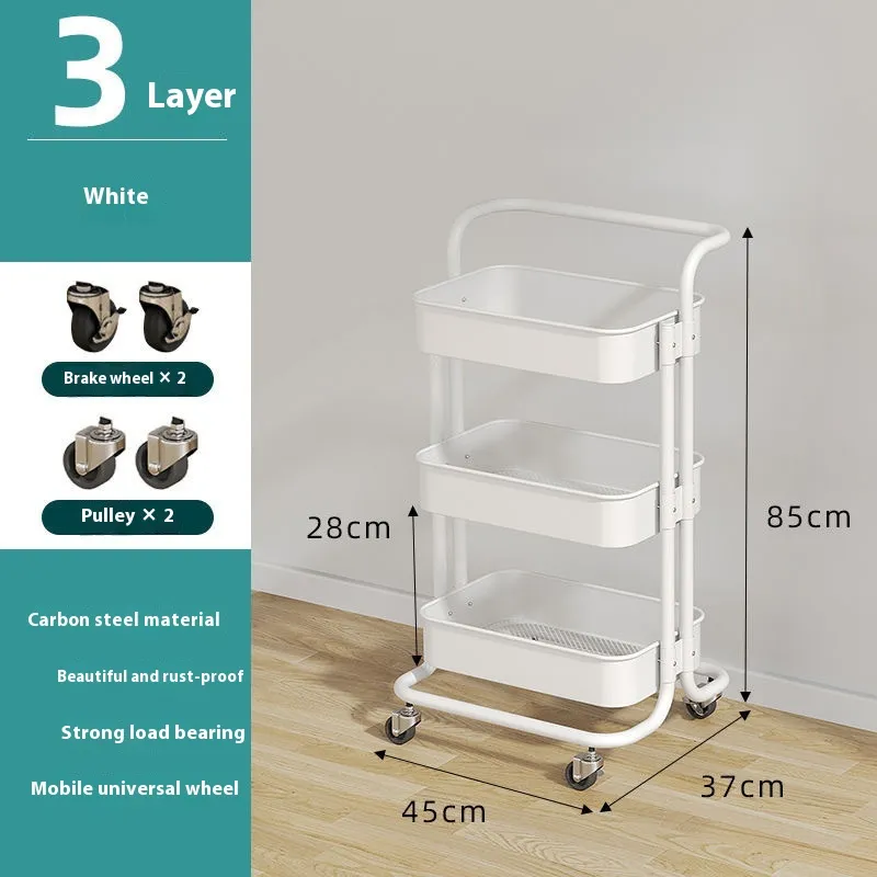 carbon steel trolley, 3-layer black carbon steel trolley, 3-layer white carbon steel trolley, 3-layer upgraded White-thick carbon steel