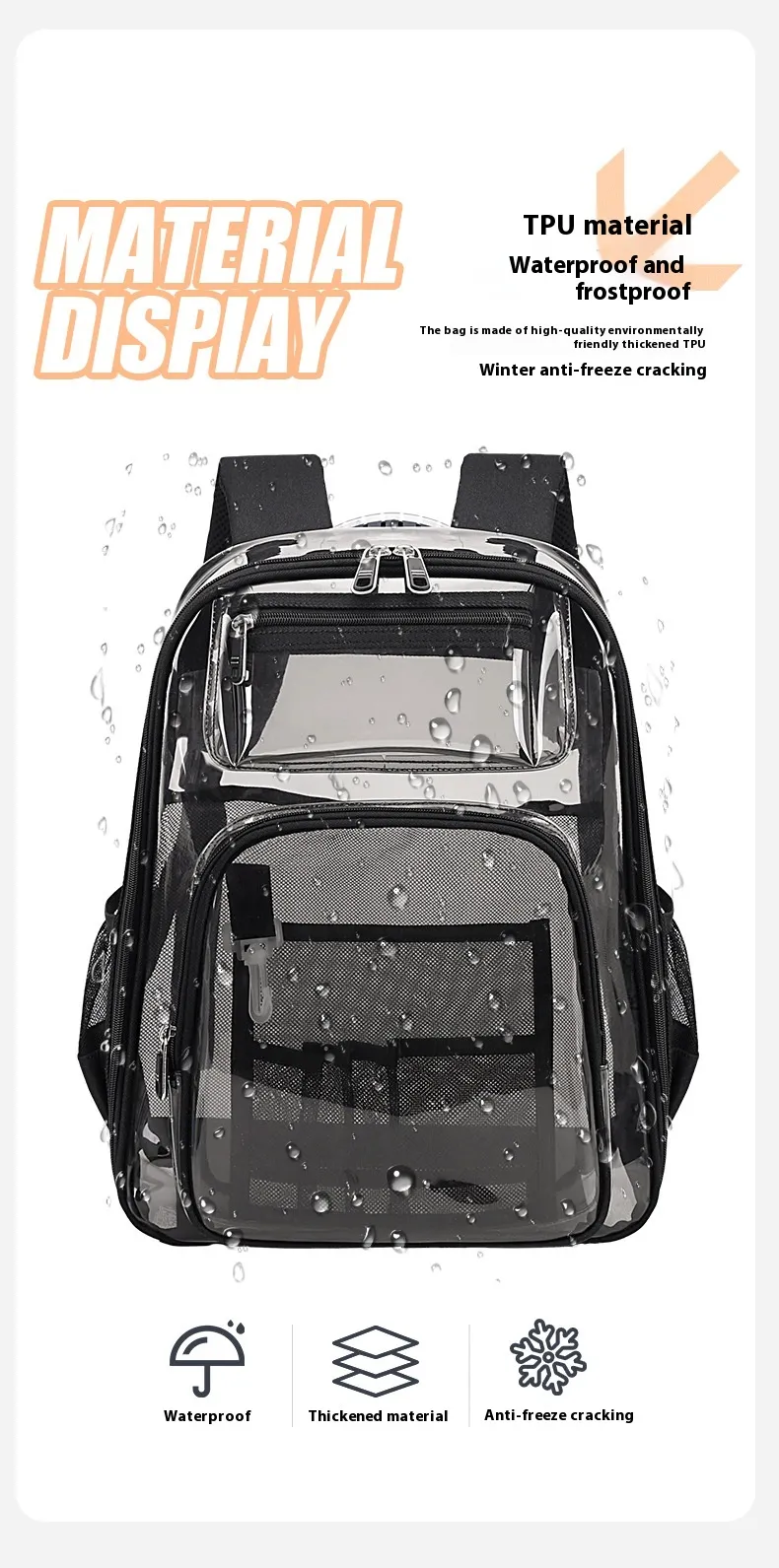 Clear backpacks are made from high-quality, durable materials such as PVC (Polyvinyl Chloride) or vinyl, which provide both strength and flexibility. These materials are water-resistant, making the bag a suitable choice for various weather conditions. The sturdy construction ensures that the bag can handle daily wear and tear, from daily commuting to travel.