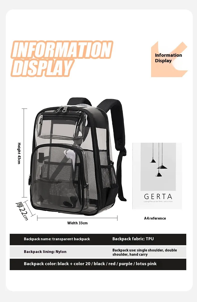The versatility of a clear backpack makes it suitable for a wide range of activities. Whether you’re using it for school, attending sporting events, going through airport security, or simply running errands, a clear backpack offers both practicality and convenience. It’s perfect for situations where quick access to your belongings is required, and when you need to comply with bag policies.