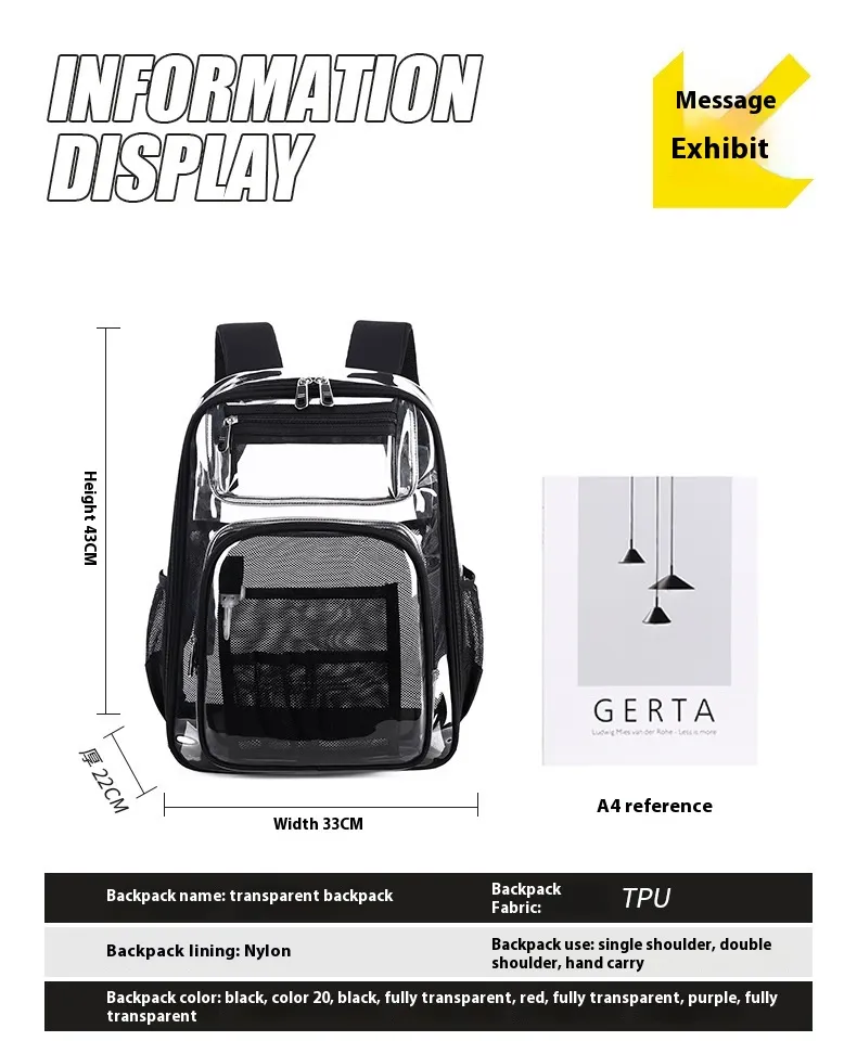 Whether you're headed to a concert, navigating airport security, or simply looking for a practical everyday backpack, a clear backpack combines functionality with style, making it a go-to accessory for many. With a variety of sizes, colors, and designs available, it’s easy to find a clear backpack that suits your needs and personal style.