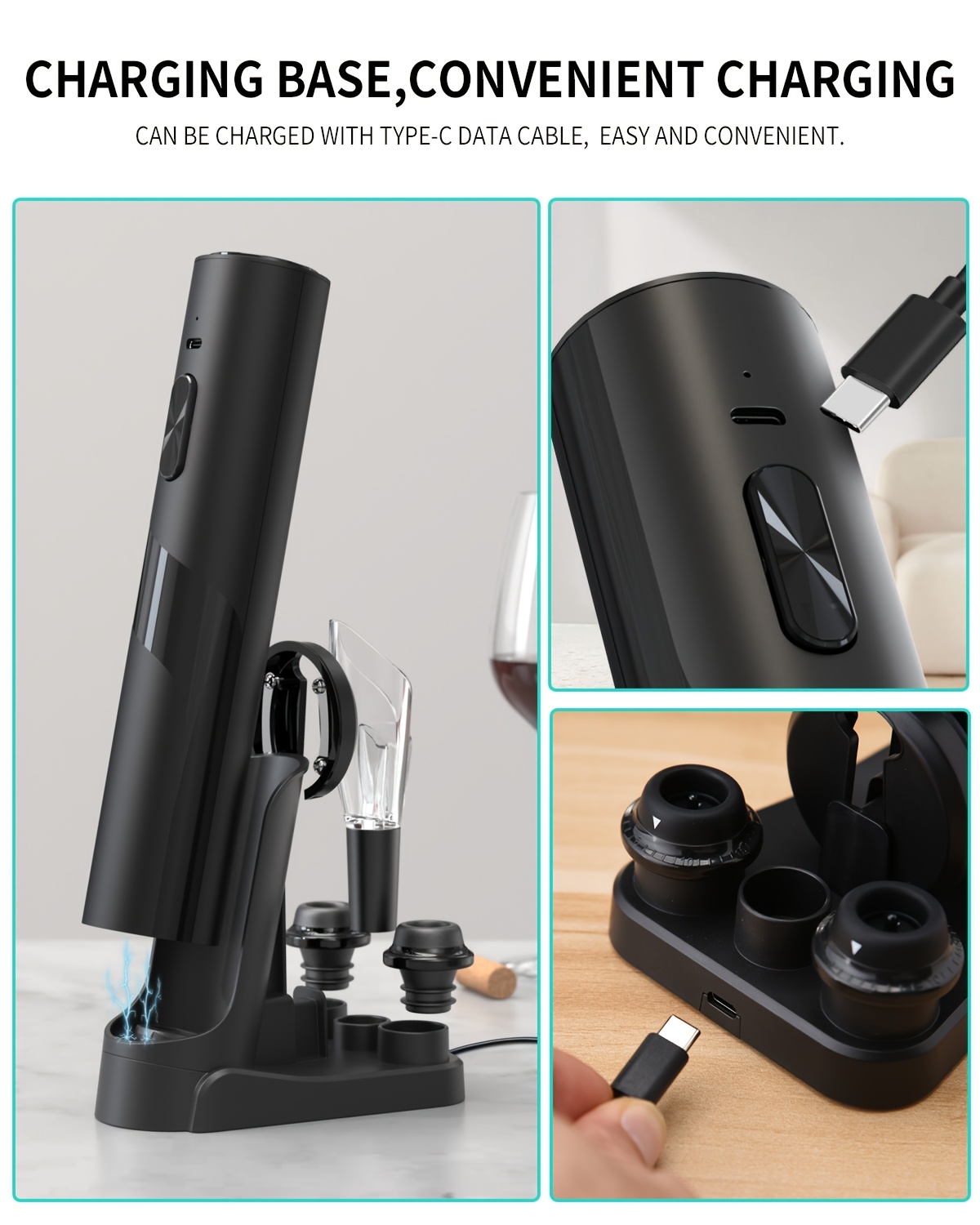- Convenient and Rechargeable: The lithium battery and charging station make it easy to keep the wine opener powered and ready for your next glass, whether you're entertaining or relaxing.