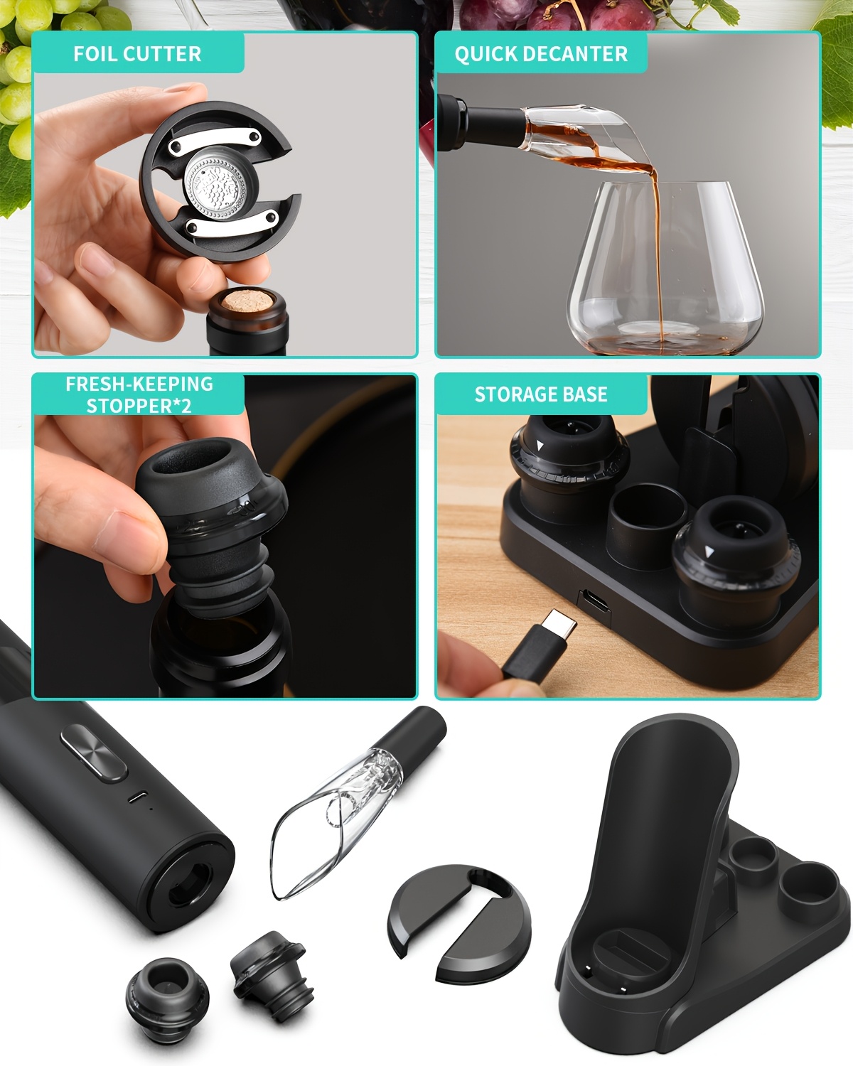 - Electric Vacuum Pump: The electric vacuum pump helps preserve your wine after opening, removing air from the bottle to keep the wine fresh and flavorful for longer.