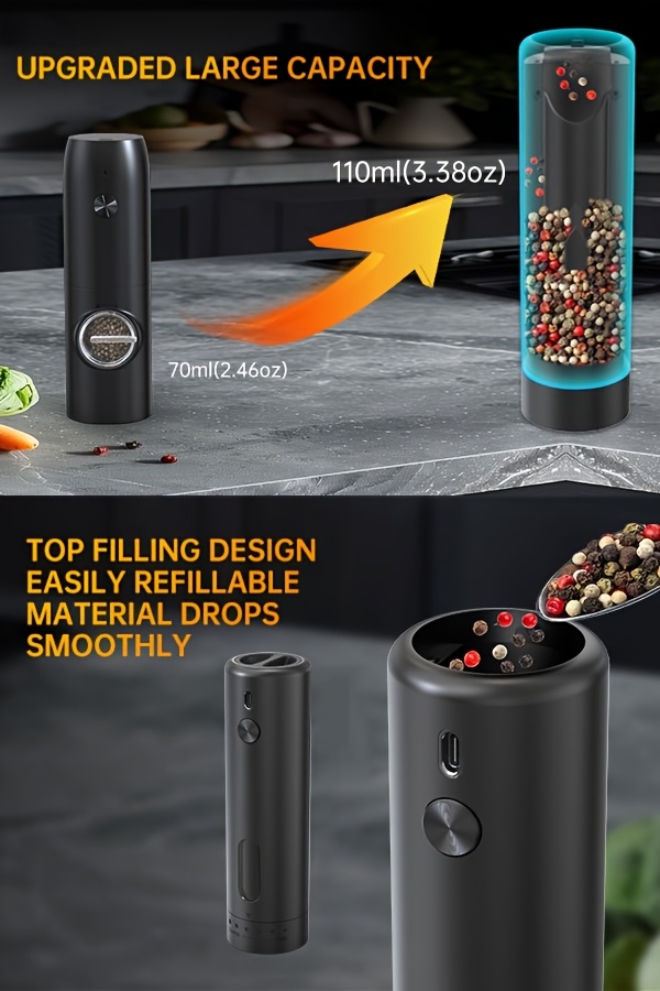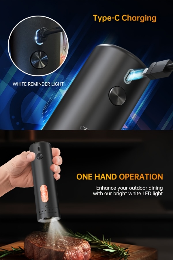 The USB rechargeable feature eliminates the need for disposable batteries, offering eco-friendly and cost-effective convenience. This electric grinder is designed to be a must-have tool in any modern kitchen or for outdoor dining experiences like barbecues and picnics.