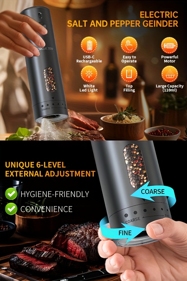 The CLITON Electric Pepper Grinder Rechargeable offers convenience, precision, and style for anyone looking to elevate their cooking experience. With one-handed operation, adjustable coarseness, and a rechargeable design, this grinder simplifies the process of adding freshly ground spices to your dishes. Whether you’re using it in your kitchen, on a picnic, or at a barbecue, this grinder provides the perfect combination of efficiency, design, and ease of use.