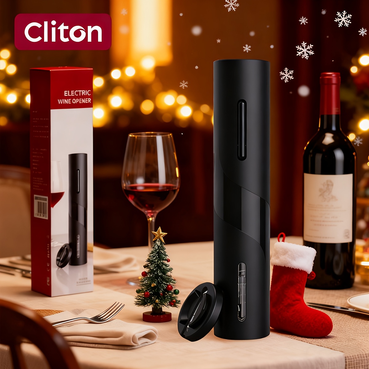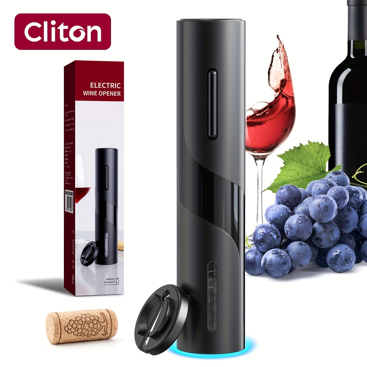 The CLITON Electric Wine Opener is designed to provide effortless cork removal, convenience, and style in one sleek package. The one-click corkscrew operation and battery-powered design make it easy to use, while the foil cutter ensures a clean and smooth experience every time you open a bottle. Whether you're entertaining guests or enjoying a quiet evening at home, this wine opener adds both practicality and elegance to your wine experience.