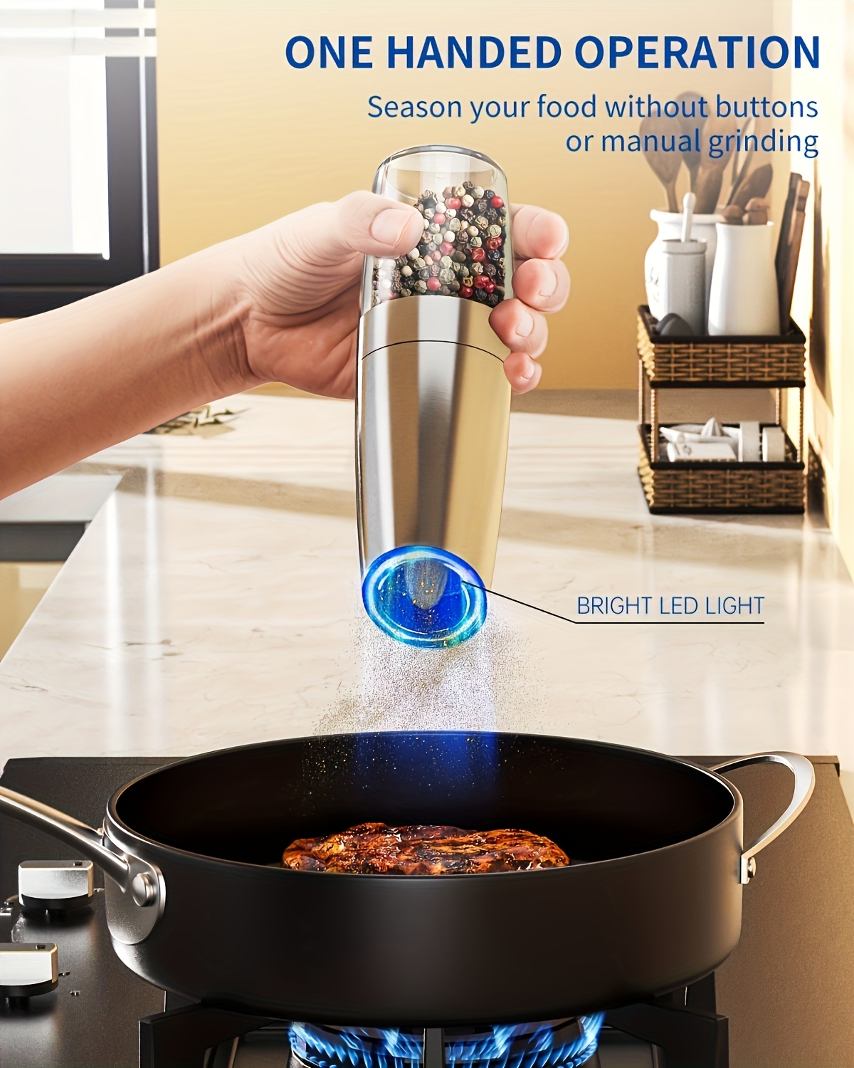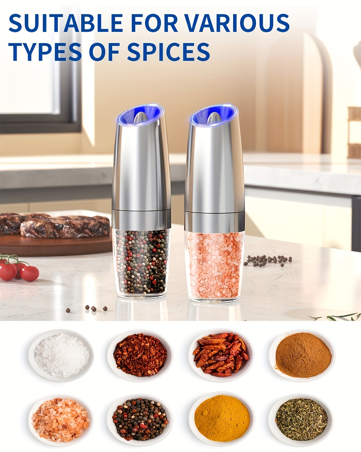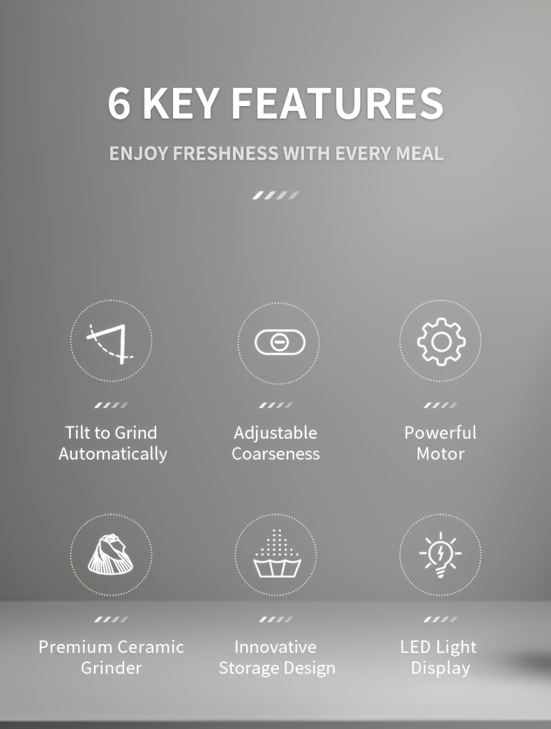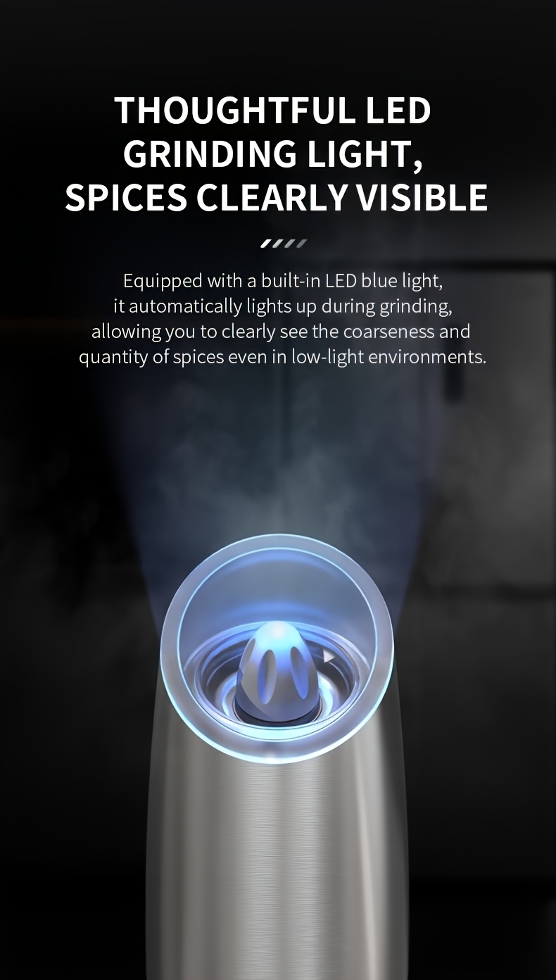 - Effortless Grinding: The gravity sensor allows for easy one-handed operation, making it simple to grind spices while you cook or serve without any hassle.