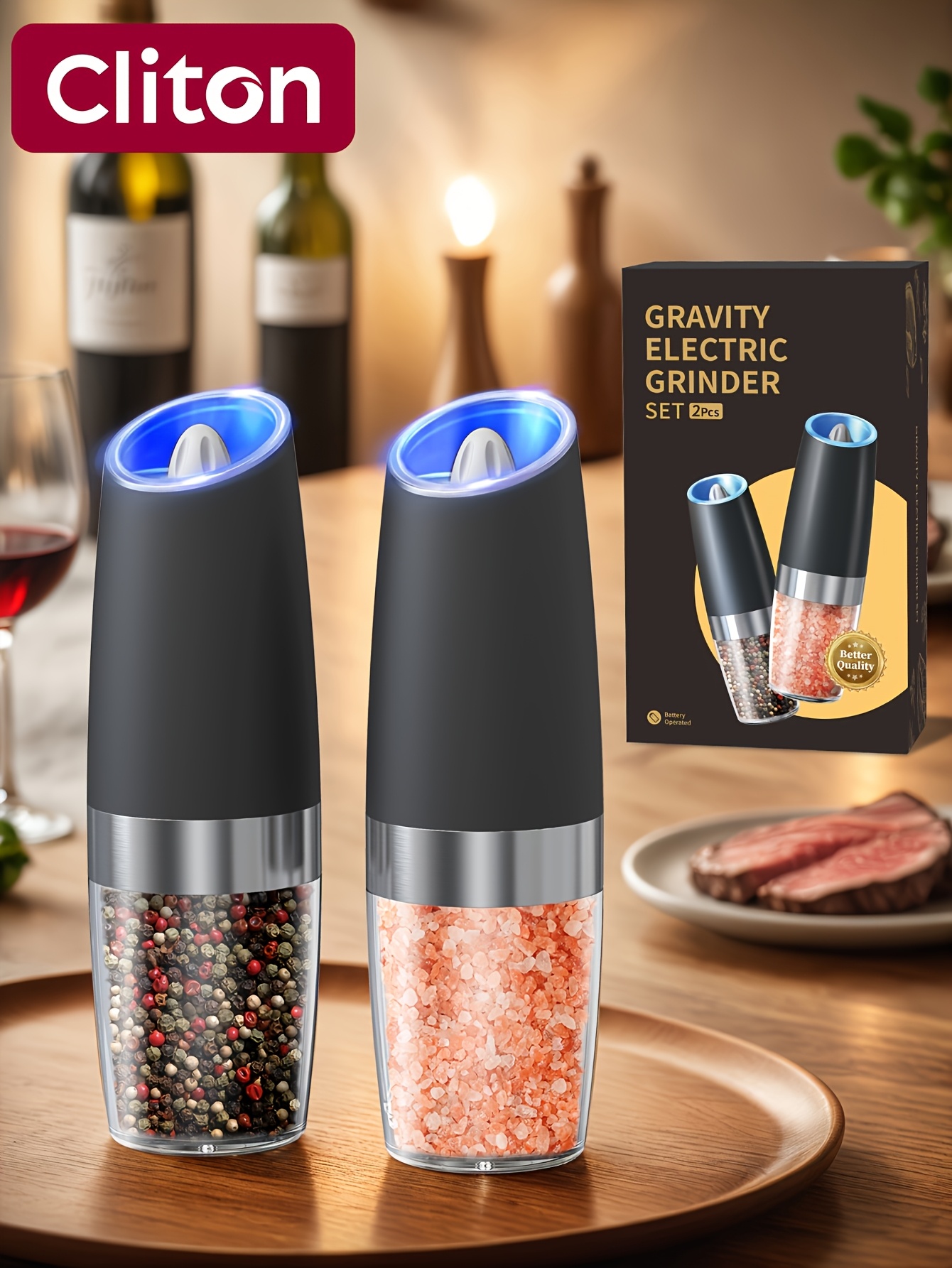 CLITON Latest Gravity Sensor Electric Grinder – Automatic Tilting Sea Salt Mill