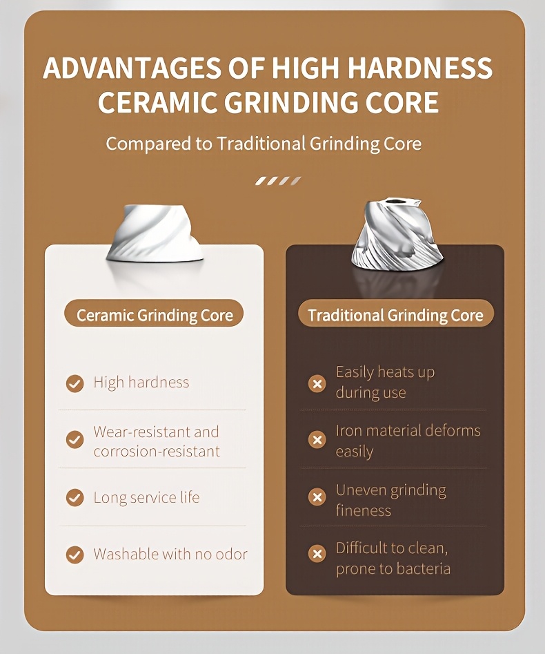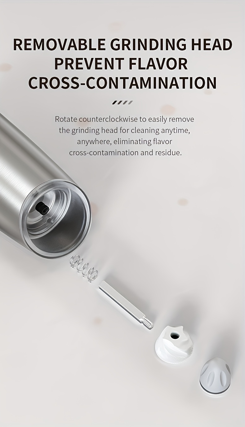 - Gravity Sensor Technology: The automatic tilting mechanism activates the grinder when tilted, offering a hands-free experience that requires no buttons or effort.