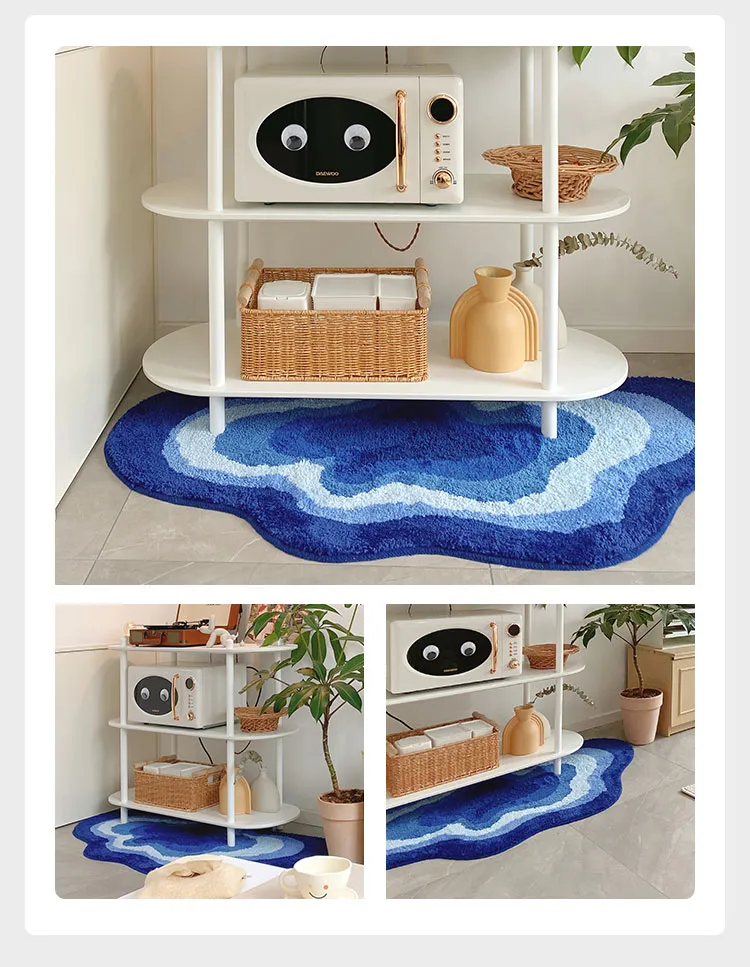 Key Features of Cloud Art Blue Special Shaped Bedroom Bedside Carpet