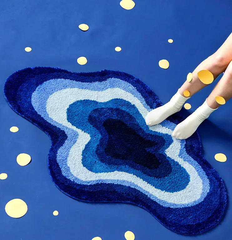 The Cloud Art Blue Special Shaped Bedroom Bedside Carpet is a unique and artistic carpet that transforms your bedroom into a cozy, visually striking space. Featuring a beautiful cloud-inspired design in soothing blue tones, this special-shaped carpet adds both style and comfort to your room. Perfect for those who appreciate modern art, creativity, and elegance, this carpet serves not just as a functional piece but as a stunning focal point for your bedroom or bedside area. Whether you're looking to enhance your décor or enjoy a soft surface to step on, the Cloud Art Blue Special Shaped Bedroom Bedside Carpet offers the perfect solution.