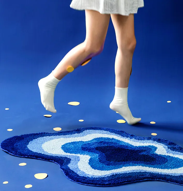 The Cloud Art Blue Special Shaped Bedroom Bedside Carpet is made with durable, high-quality materials designed to withstand daily wear and tear. The fibers are resistant to fading, ensuring that the vibrant blue design remains intact over time. Whether used in a high-traffic area like a bedroom or as a decorative piece beside your bed, this carpet is built to last while retaining its beauty and softness.