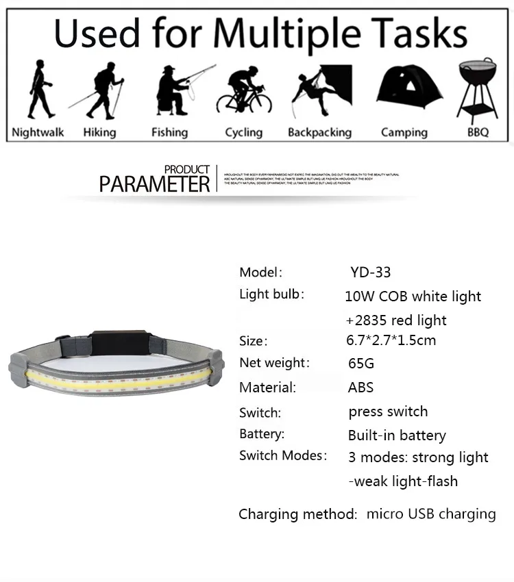 Built with high-efficiency COB (Chip-on-Board) LED technology, this headlight produces a wide, bright beam that evenly lights up your surroundings without glare or shadows. The red light warning function enhances visibility for safety in low-light conditions, while the lightweight and adjustable headband ensures comfort during extended use.