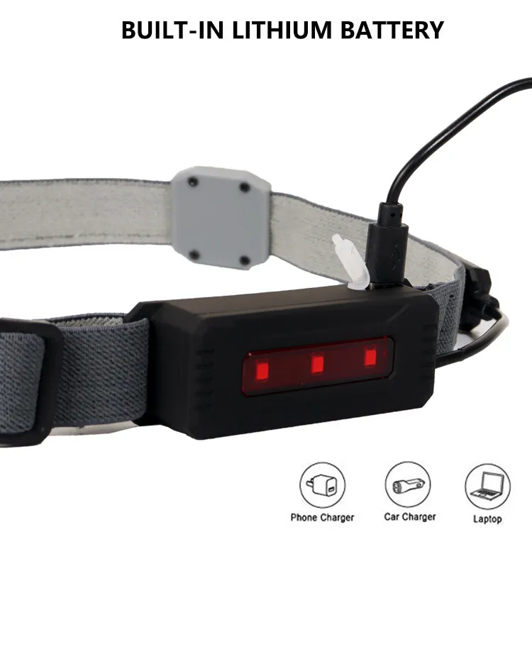 This headlight features a built-in rechargeable battery that eliminates the need for disposable batteries. The USB charging port allows convenient recharging via power banks, laptops, or adapters, providing long-lasting illumination on a single charge. It’s an environmentally friendly and cost-effective lighting solution.