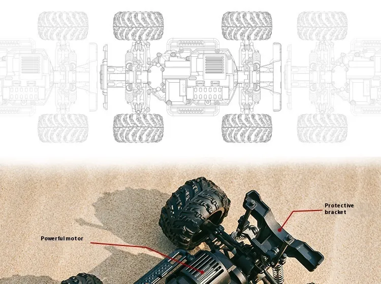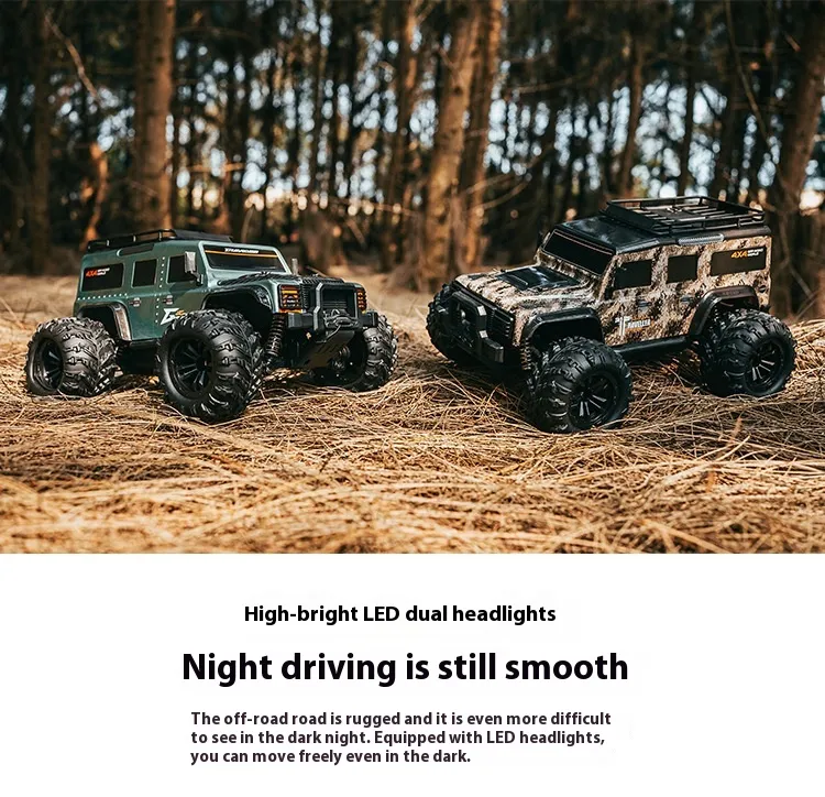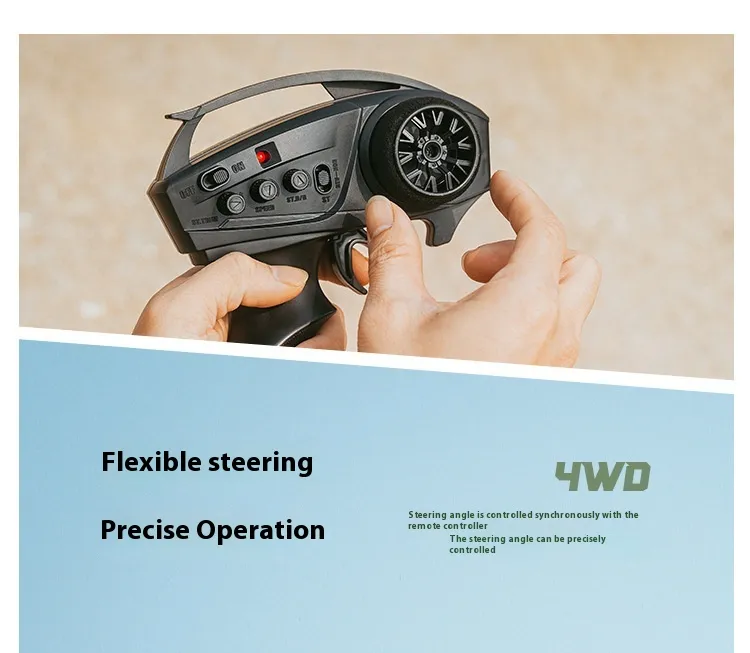 Diseñado para entusiastas del todoterreno, este coche RC cuenta con un robusto sistema de tracción en las cuatro ruedas (4WD) que proporciona una tracción y estabilidad excepcionales. La configuración 4x4 garantiza que el coche pueda afrontar una variedad de superficies desafiantes, desde caminos de grava y dunas de arena hasta senderos rocosos y lodosos. No importa lo difícil que sea el terreno, el Cross-Border Off-Road Car lo domina todo con facilidad.