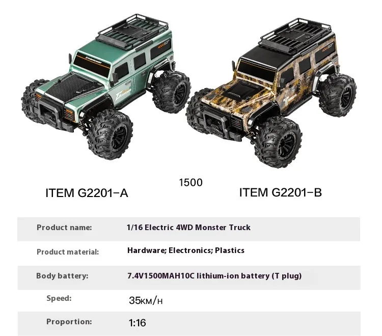 Aumenta tu emoción con el Coche de juguete todoterreno de alta velocidad Cross-Border, el vehículo de carreras definitivo, diseñado para afrontar cualquier desafío. Con su potente tracción en las cuatro ruedas, sus avanzadas capacidades de derrape y su motor de alta velocidad, este coche RC está diseñado para ofrecer rendimiento, precisión y aventura. Ya sea que estés compitiendo por terrenos accidentados, dominando derrapes pronunciados o conduciendo por senderos estrechos, este auto de control remoto ofrece emociones infinitas para niños y adultos. Perfecto para entusiastas del todoterreno, aficionados o cualquiera que busque agregar un auto RC de alto rendimiento a su colección, el Coche de Control Remoto Todoterreno de Alta Velocidad Cross-Border está diseñado para ofrecer máxima velocidad, control y durabilidad. Prepárate para explorar nuevas posibilidades de carreras y crear inolvidables aventuras al aire libre con este dinámico vehículo RC todoterreno. ¿Por qué elegir el Coche de Control Remoto Todoterreno de Alta Velocidad Cross-Border? 1. Rendimiento de alta velocidad para carreras emocionantes