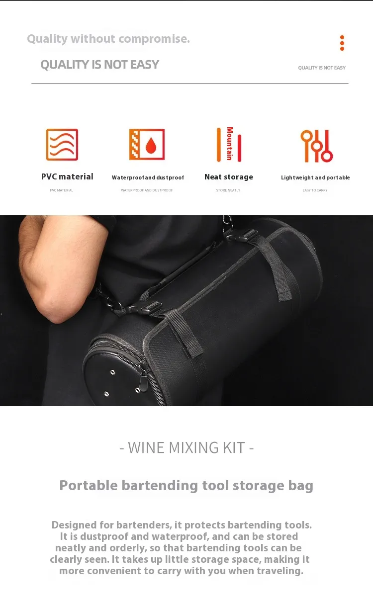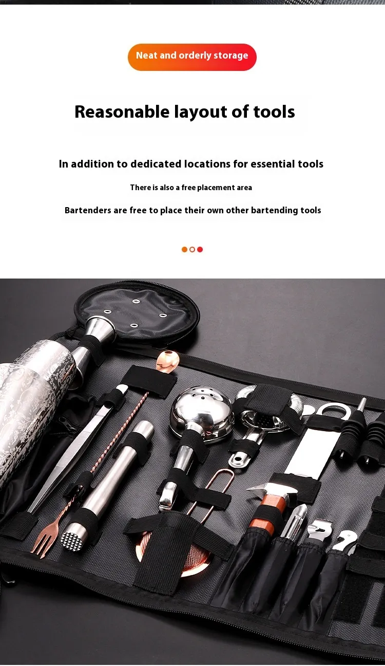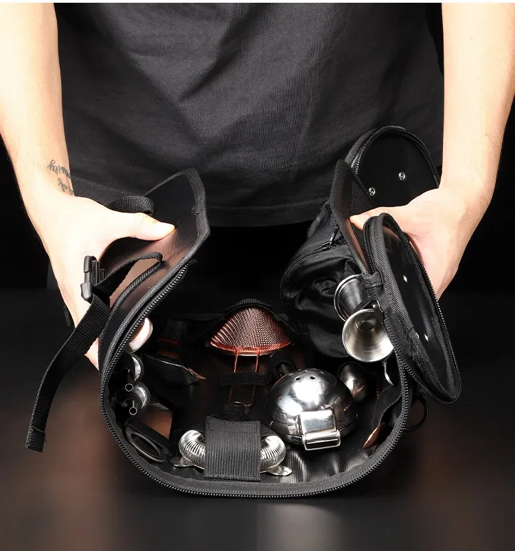 Specifically designed to accommodate cocktail shakers and bar tools in a structured way.