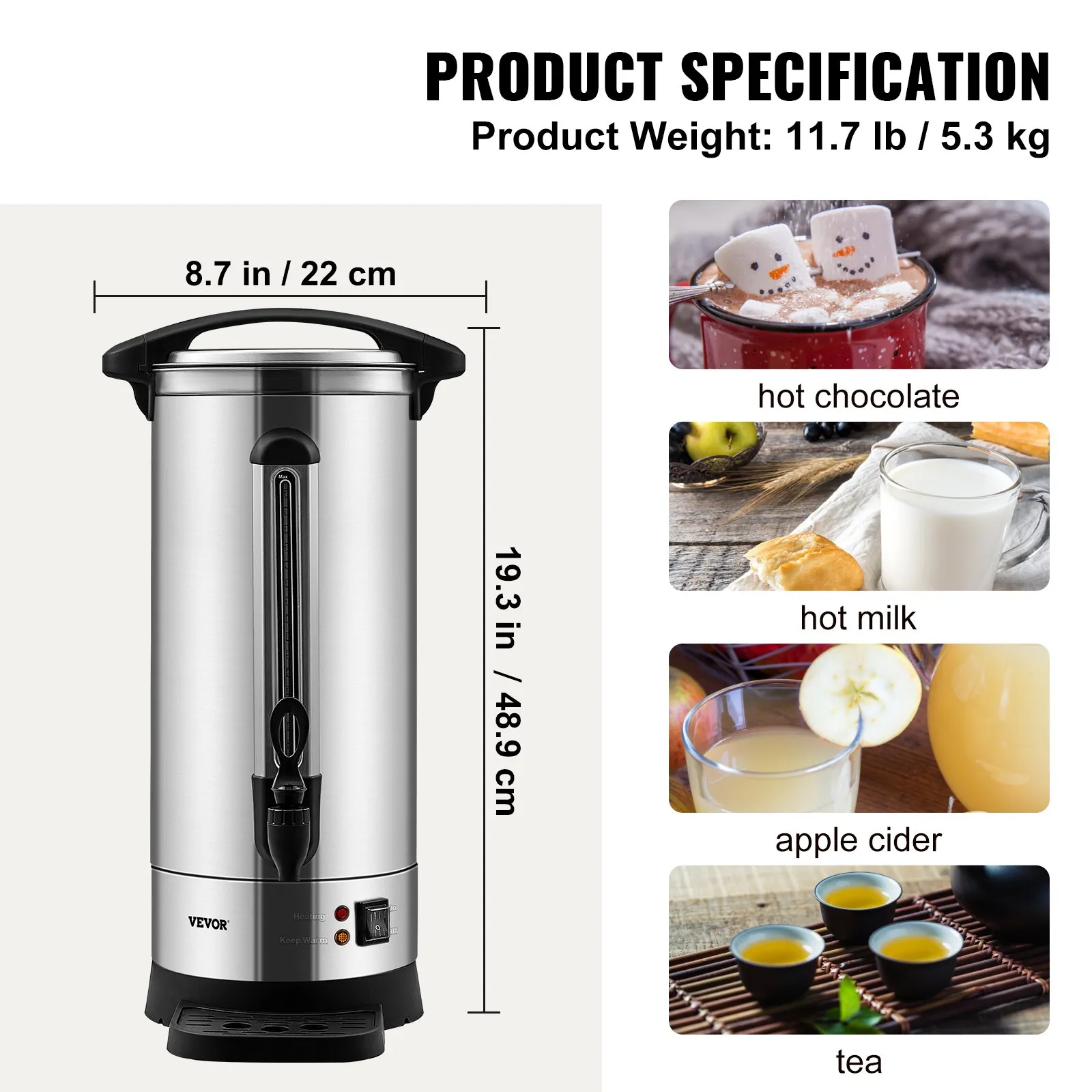 Example: Keep your coffee hot and ready for serving throughout the duration of your event, avoiding the hassle of reheating. -