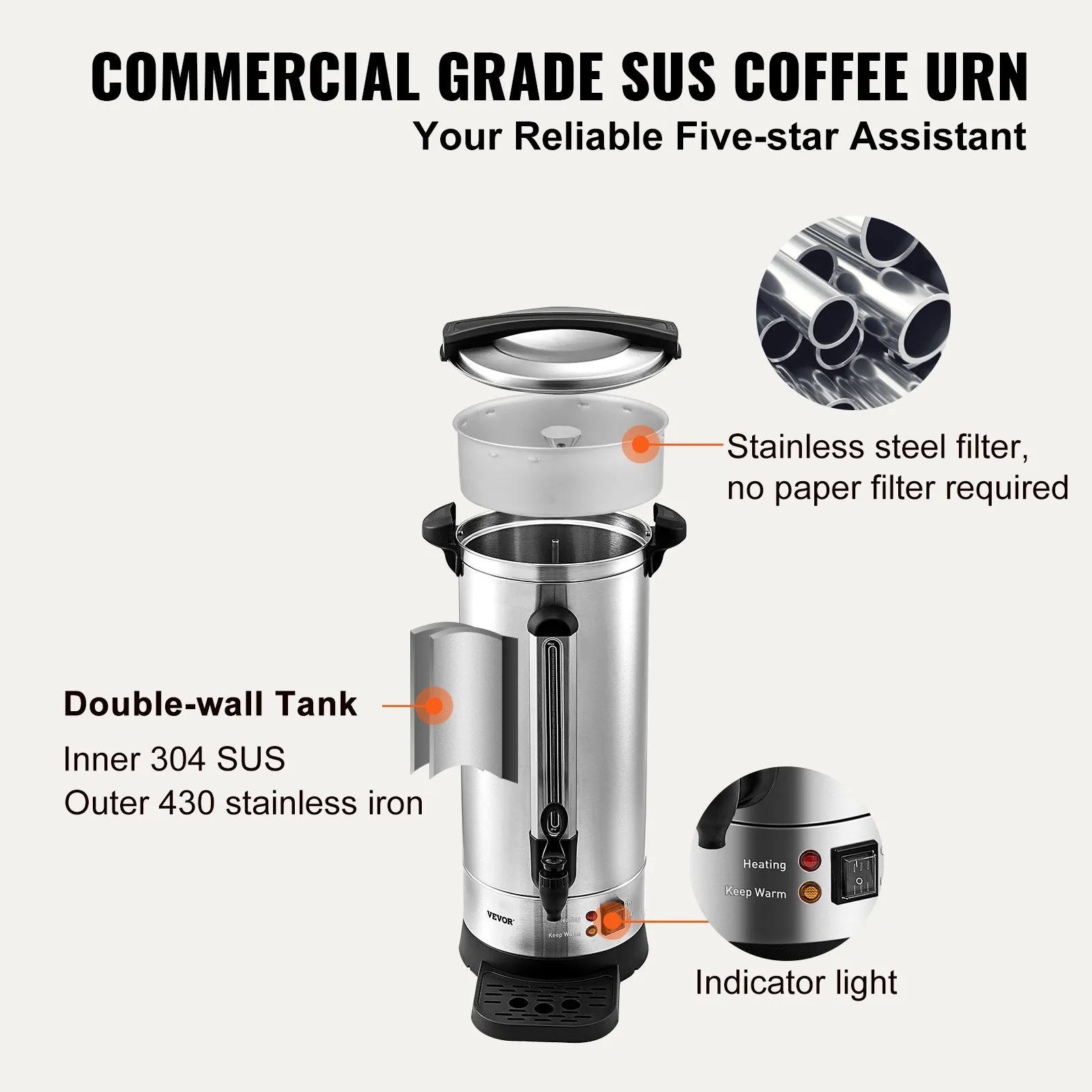 Durable and Easy to Clean: Made from durable stainless steel or high-quality materials, this coffee urn is built to last