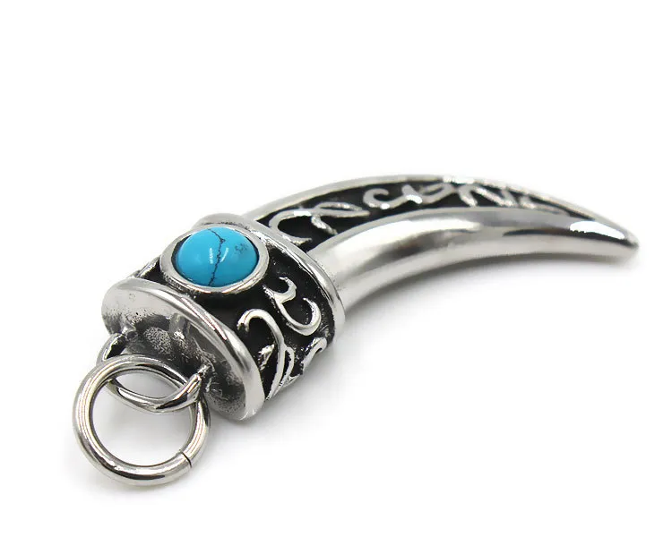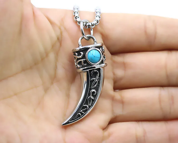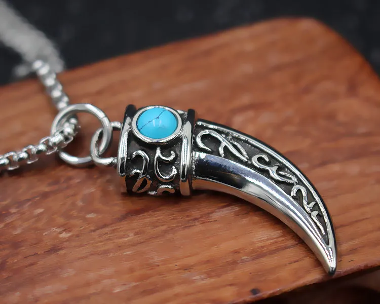 Beneficios del colgante vintage de acero de titanio con diente de lobo y piedra de pino azul para hombre