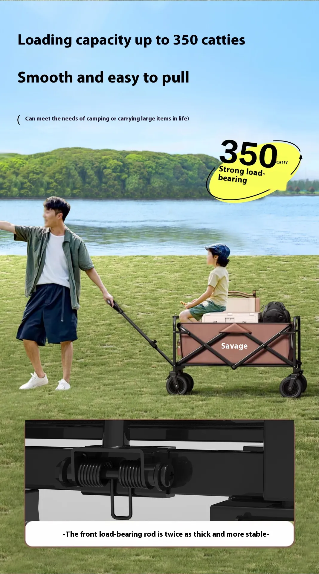 Avoid the strain of carrying heavy bags by letting the wagon do the work, ideal for family outings, market shopping, and long walks to picnic spots.