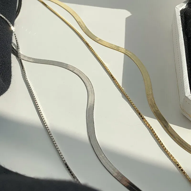El diseño de hueso de serpiente presenta eslabones elegantes y entrelazados que brindan una textura suave y fluida. El aspecto imita las sutiles curvas y las elegantes líneas de una serpiente, agregando un elemento vanguardista y feroz a la pieza. La flexibilidad del diseño de hueso de serpiente asegura que el collar se ajuste cómodamente alrededor de su cuello, manteniendo su apariencia audaz y distintiva.