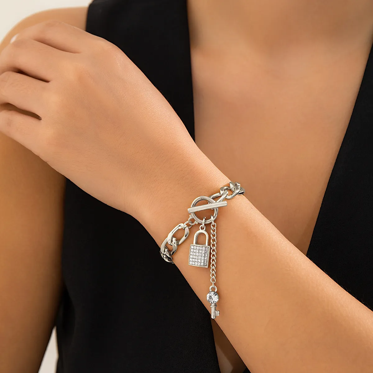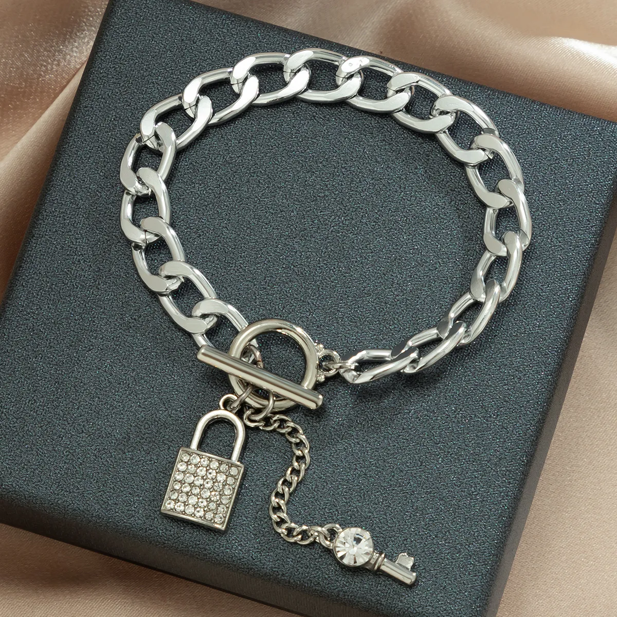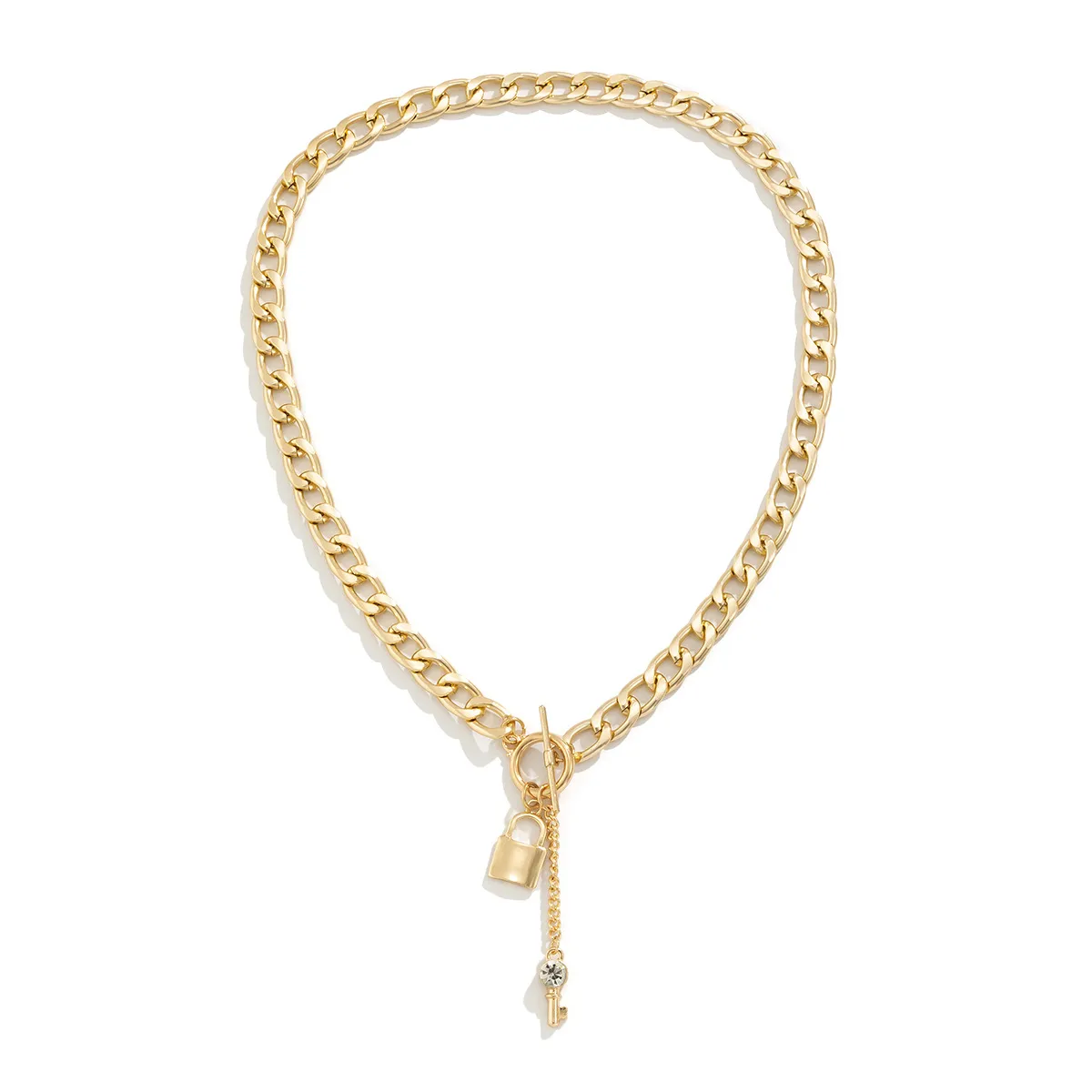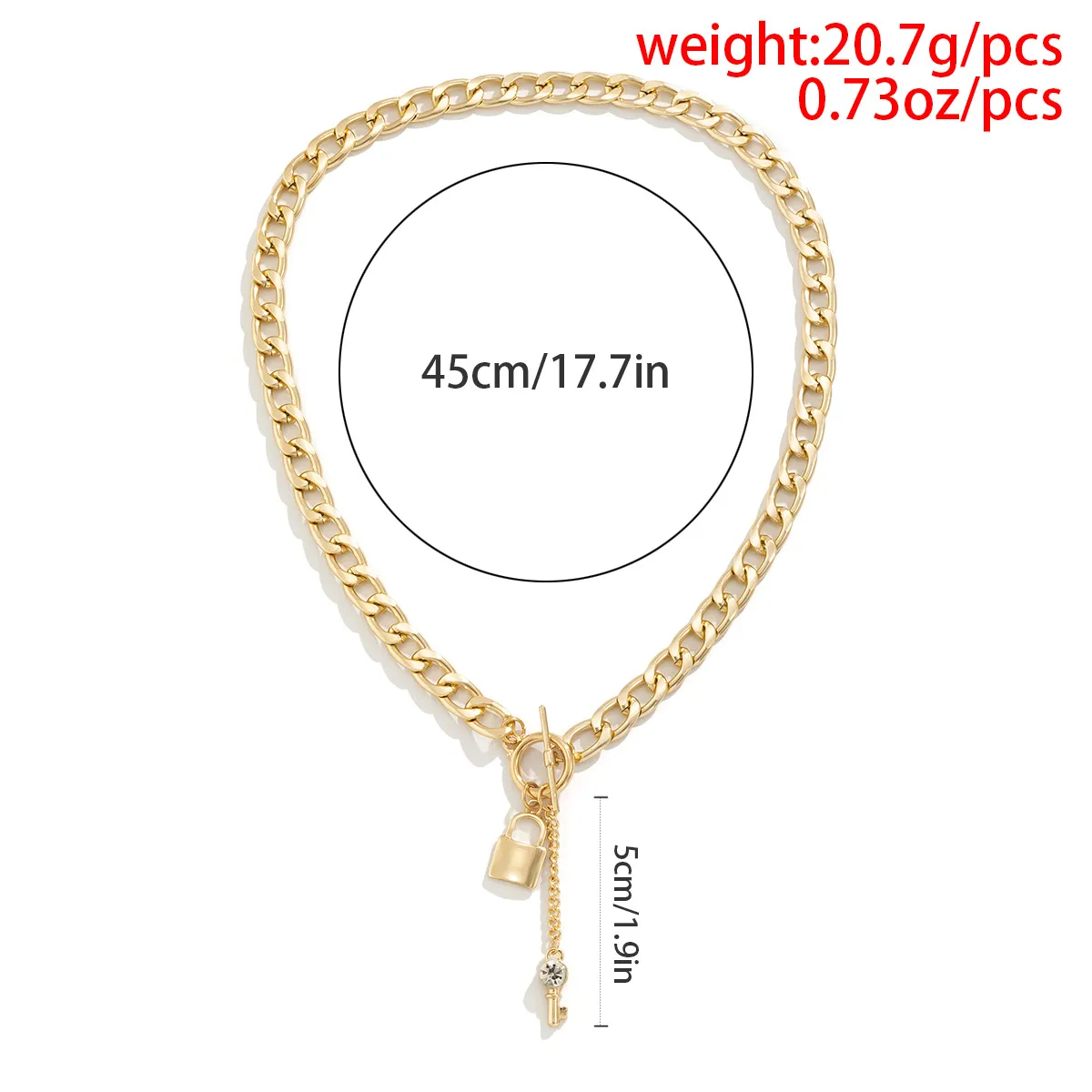 Realza tu estilo con este moderno collar de cadena gruesa con un brillante colgante de candado y llave. Diseñado para mujer, este accesorio de moda le da un toque atrevido a cualquier look. Perfecto para ocasiones informales o formales, es un imprescindible en tu colección de joyas. Compra ahora accesorios de moda para mujer.