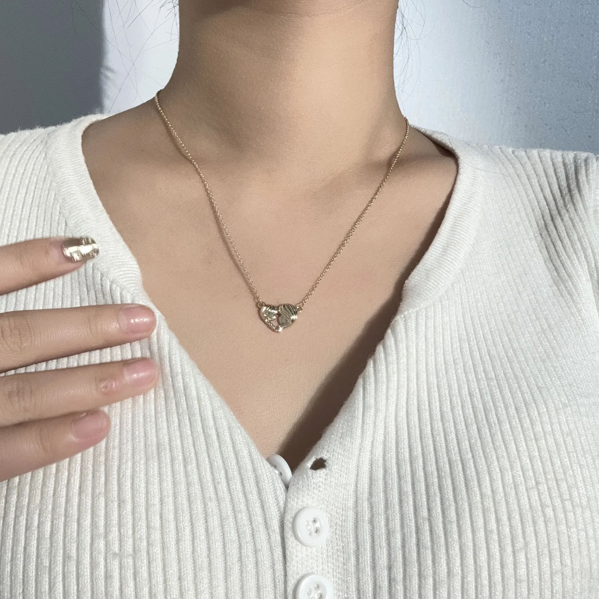 Collar de amor europeo y americano con diseño geométrico de corazón de melocotón y cobre para el Día de la Madre