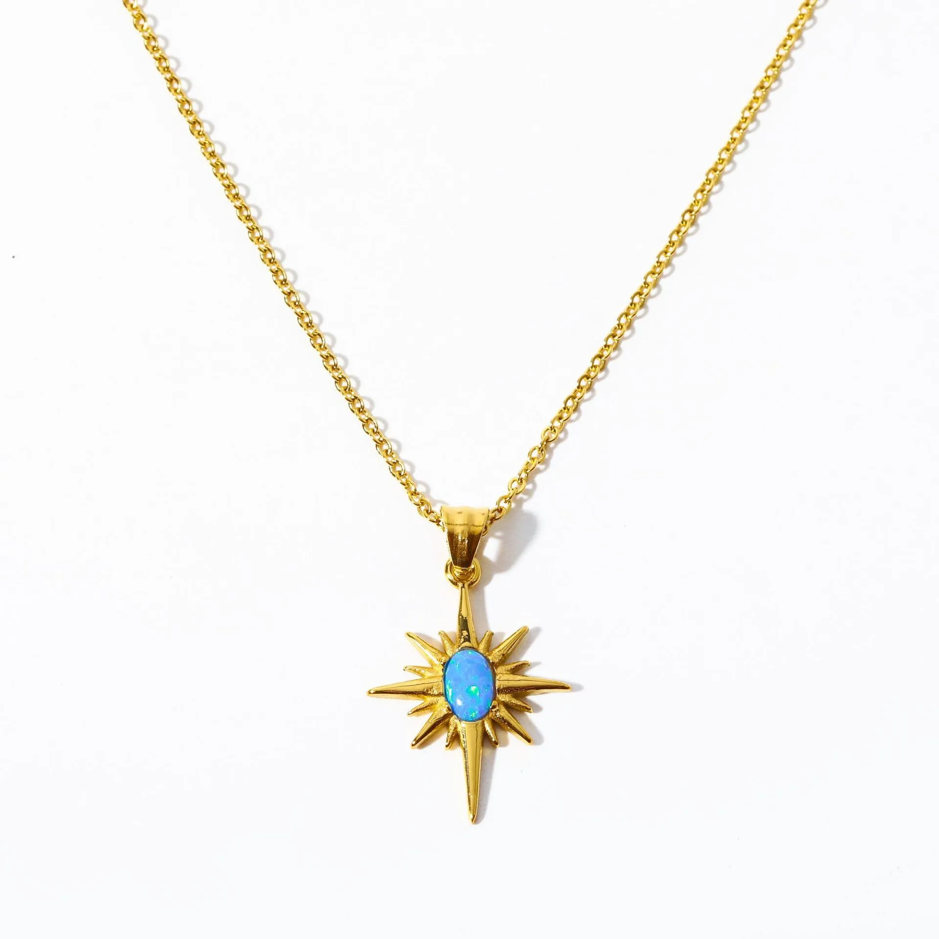 El acabado dorado agrega un toque de calidez y lujo, mientras que la gema natural aporta un elemento único y vibrante al diseño. La cadena de clavícula garantiza un ajuste cómodo y favorecedor, lo que permite que el colgante descanse con gracia sobre su clavícula, atrayendo la atención hacia su escote.