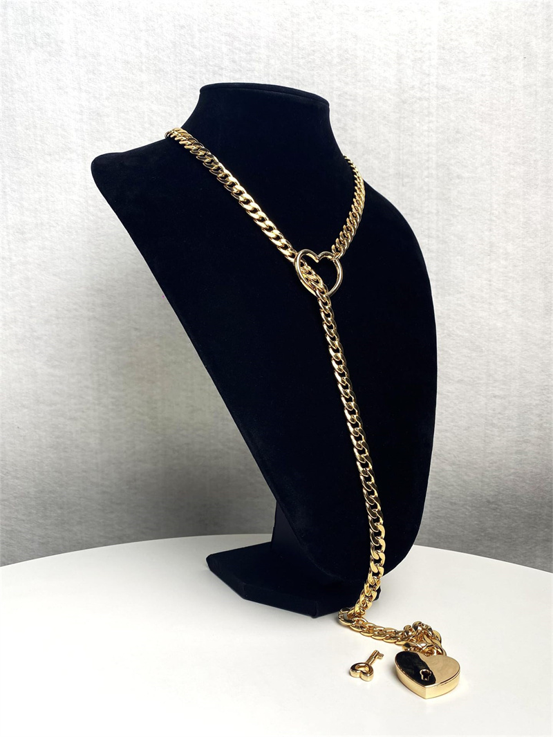 El collar de cadena deslizante Fashion Jewelry 2024 combina estilo y funcionalidad, con una exclusiva anilla en forma de corazón y una cadena de eslabones cubanos. Este collar largo es perfecto para mujeres que buscan destacar con sus accesorios, combinando la estética punk rock y gótica para un look moderno. El núcleo ajustable con candado en forma de corazón y llave le da un toque divertido y romántico a esta versátil pieza.