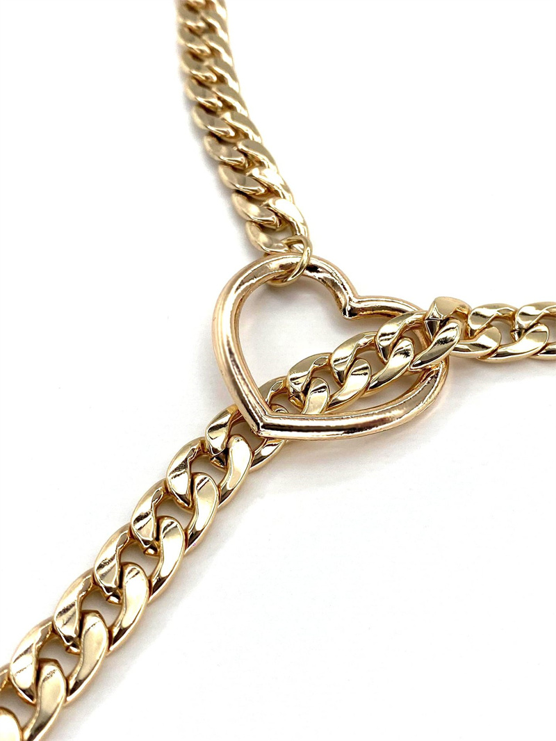 Collar de cadena deslizante con forma de corazón y anilla en O, estilo rock cubano, collar largo ajustable