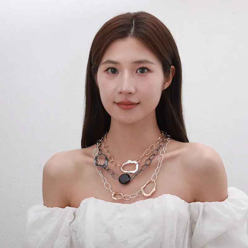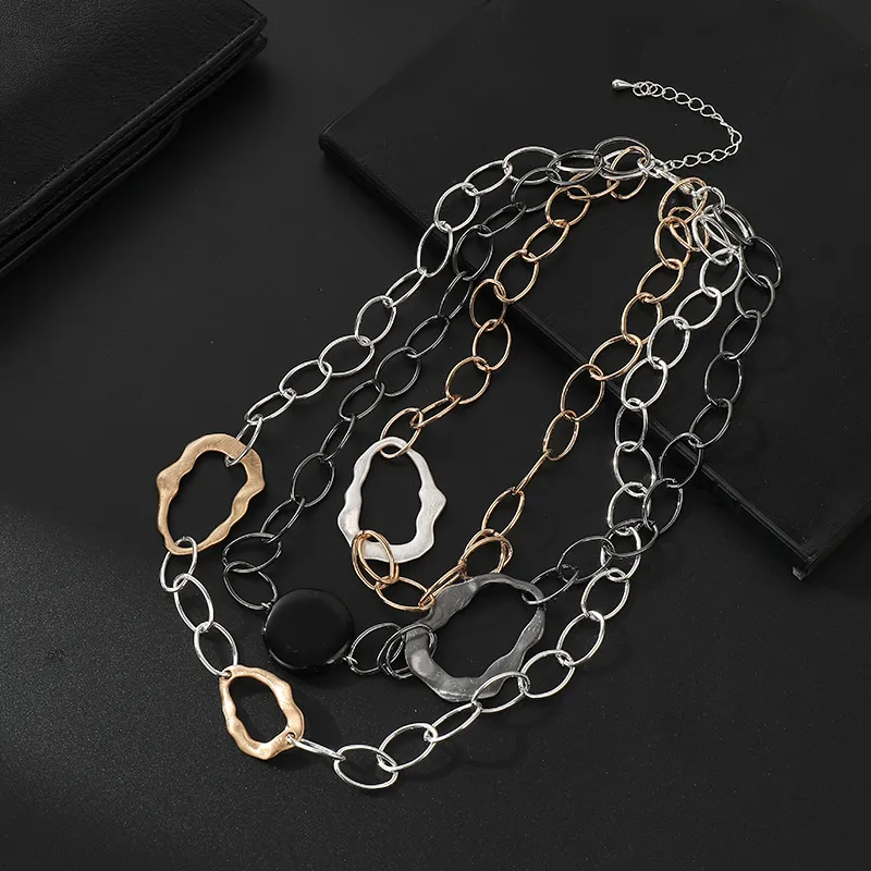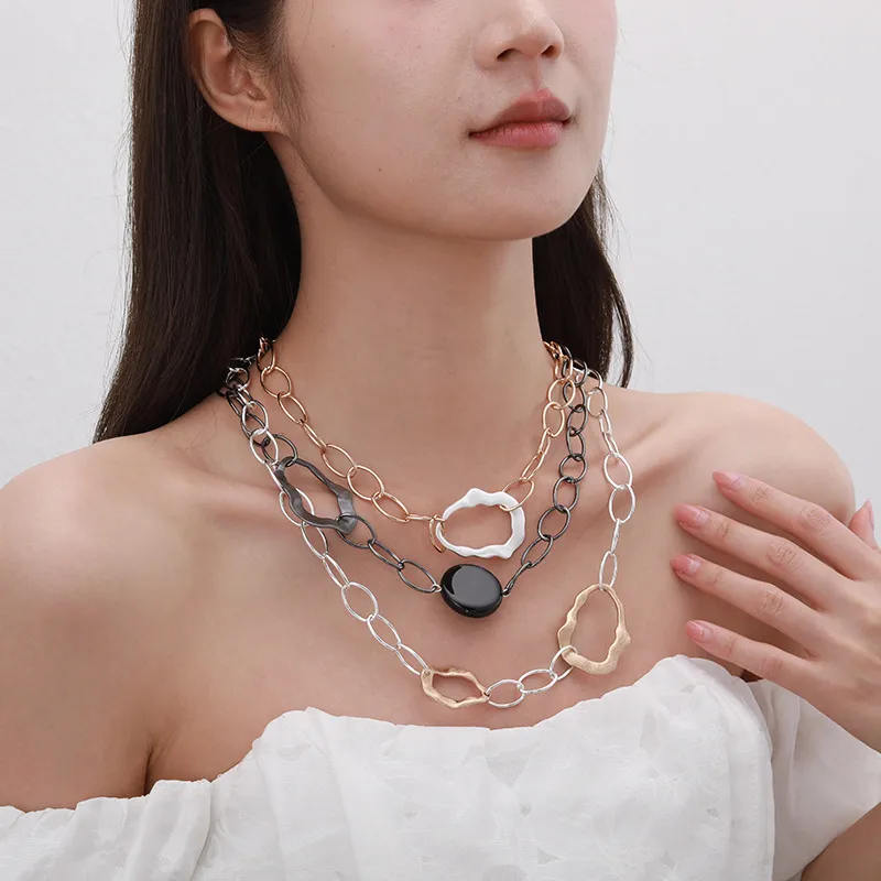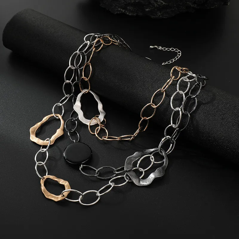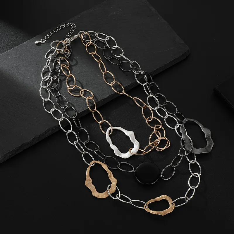 El Collar de moda para mujer retro exagerado está elaborado con materiales de alta calidad como acero inoxidable , metal chapado en oro o plata, lo que garantiza que no solo sea elegante sino también duradero. Los materiales utilizados están diseñados para soportar el uso diario manteniendo su brillo y lujo.