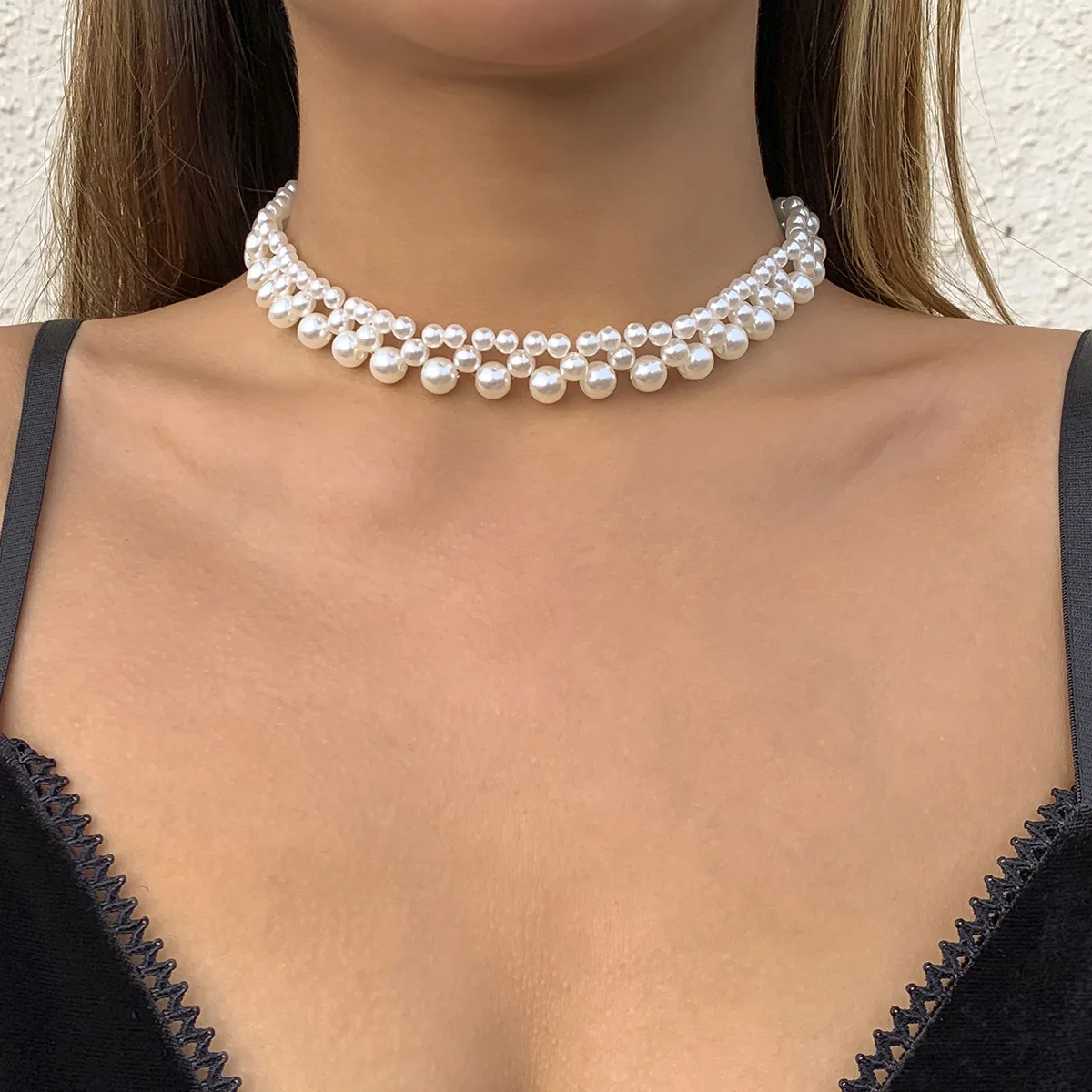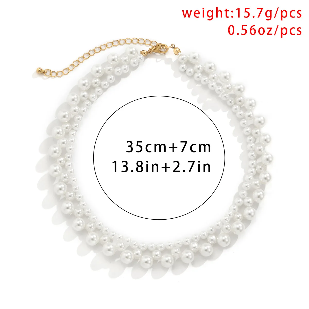 El collar está adornado con perlas de imitación de alta calidad, que replican la elegancia de las perlas reales.