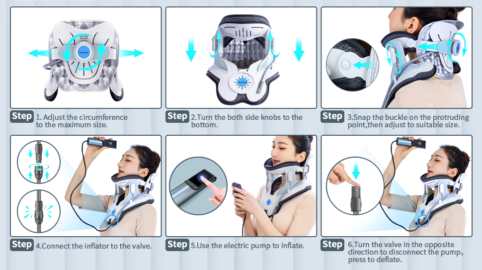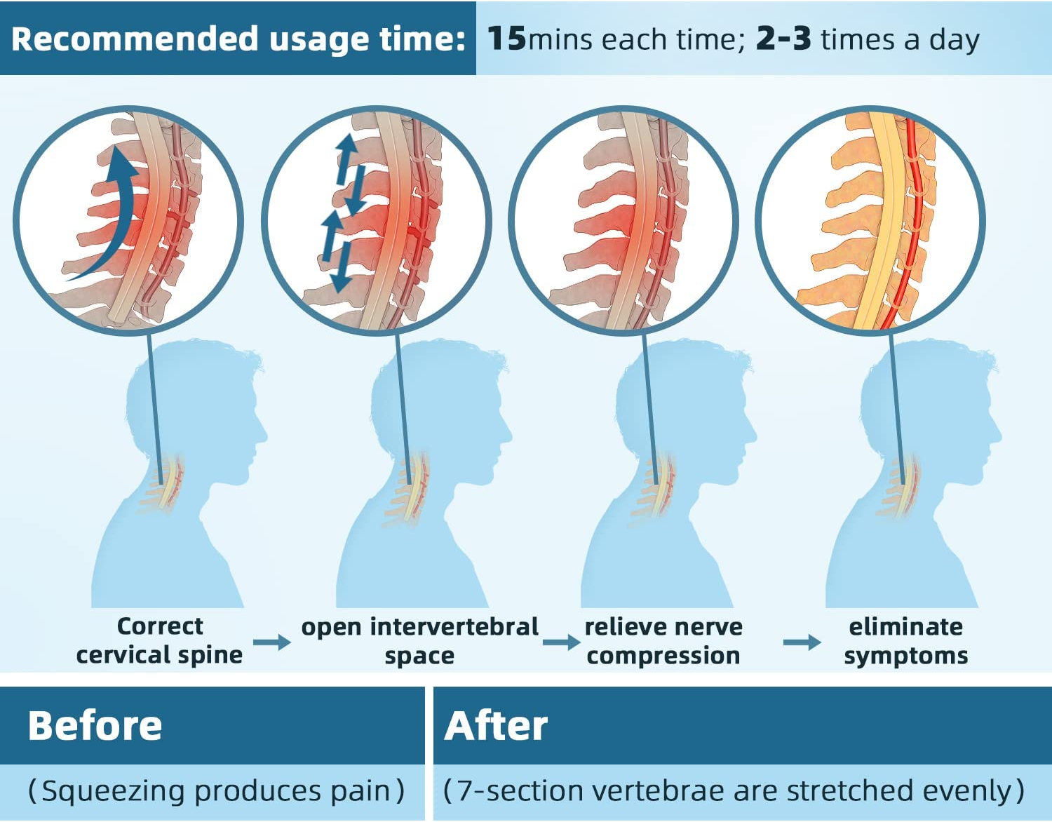 - El uso frecuente del dispositivo ayudará a los pacientes a prevenir la displasia espondiloepifisaria congénita, aliviar el dolor cervical y la fatiga, y liberar los síntomas clínicos mediante tracción neumática.