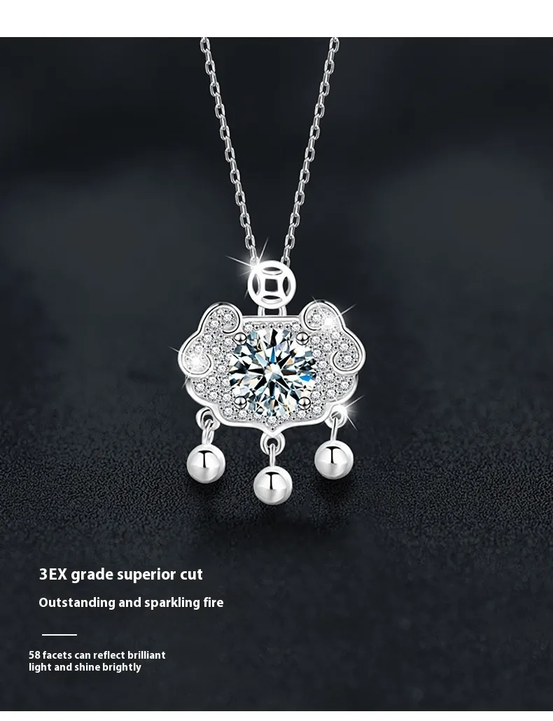 - Diseño: Colgante con cierre de seguridad Ruyi y piedra moissanita