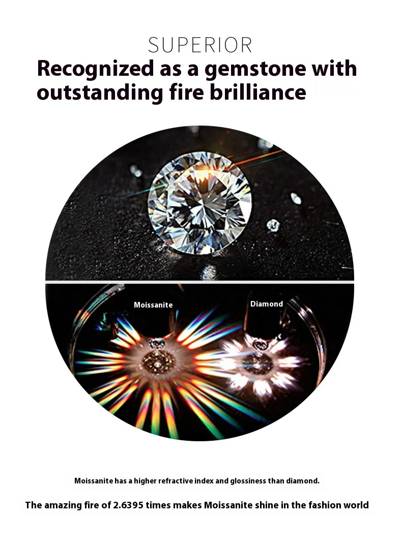 - Material: Piedra moissanita, metal de alta calidad (aleación hipoalergénica o plata de ley)