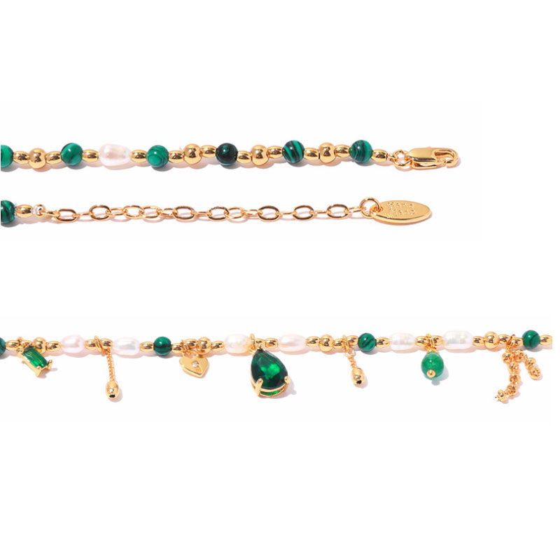 Collar vintage elegante con borlas de perla y esmeralda